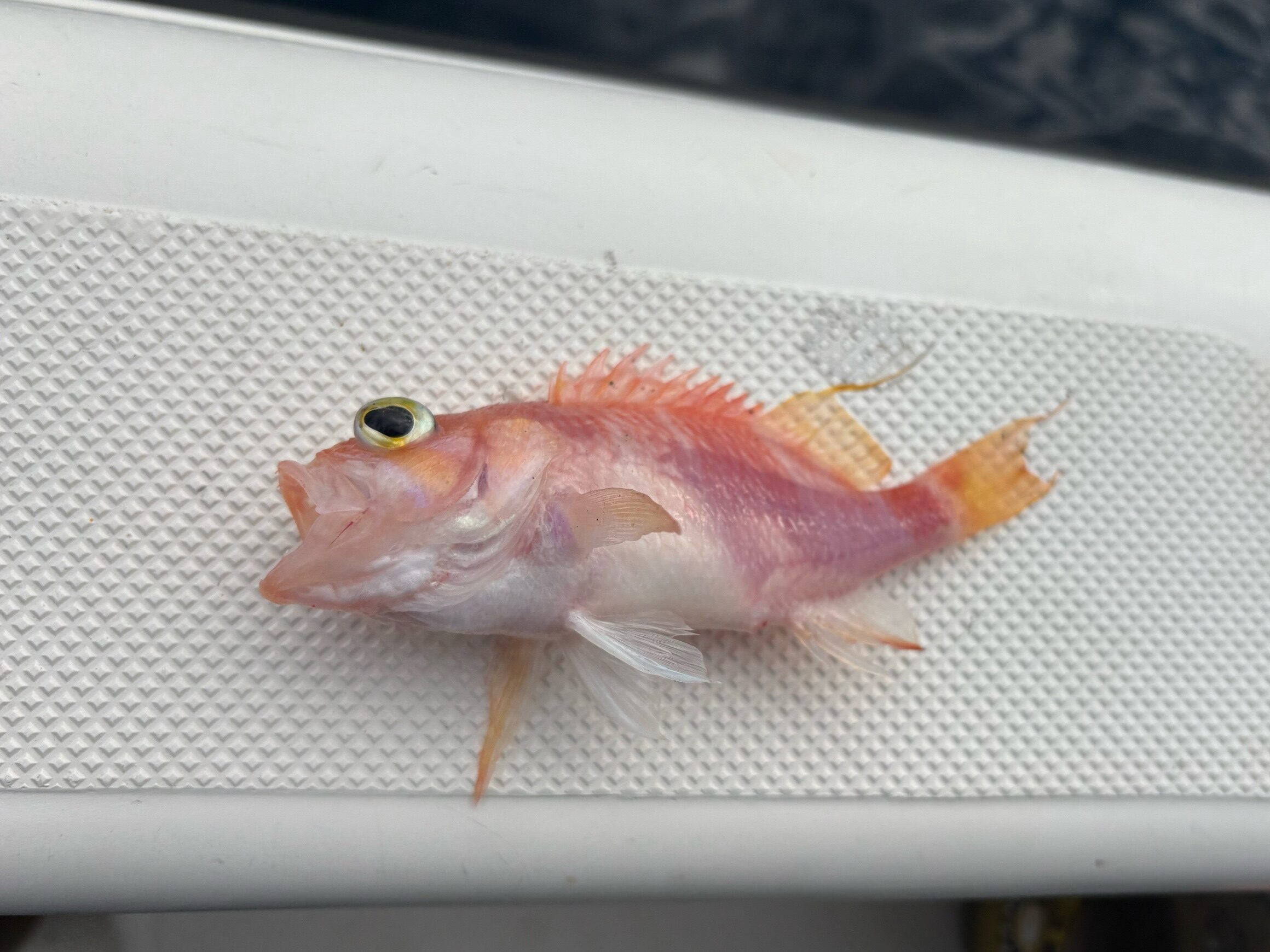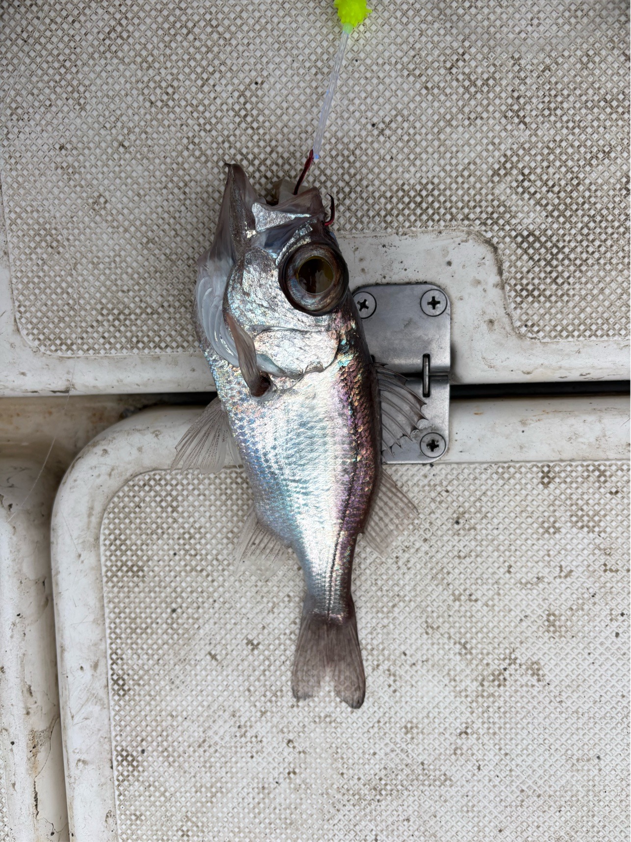 船中ファーストフィッシュは川口さんのシロムツ。 私は1投目から針2本切られ、次の投入でも針1本やられていました。 スミヤキか何かでしょうか?