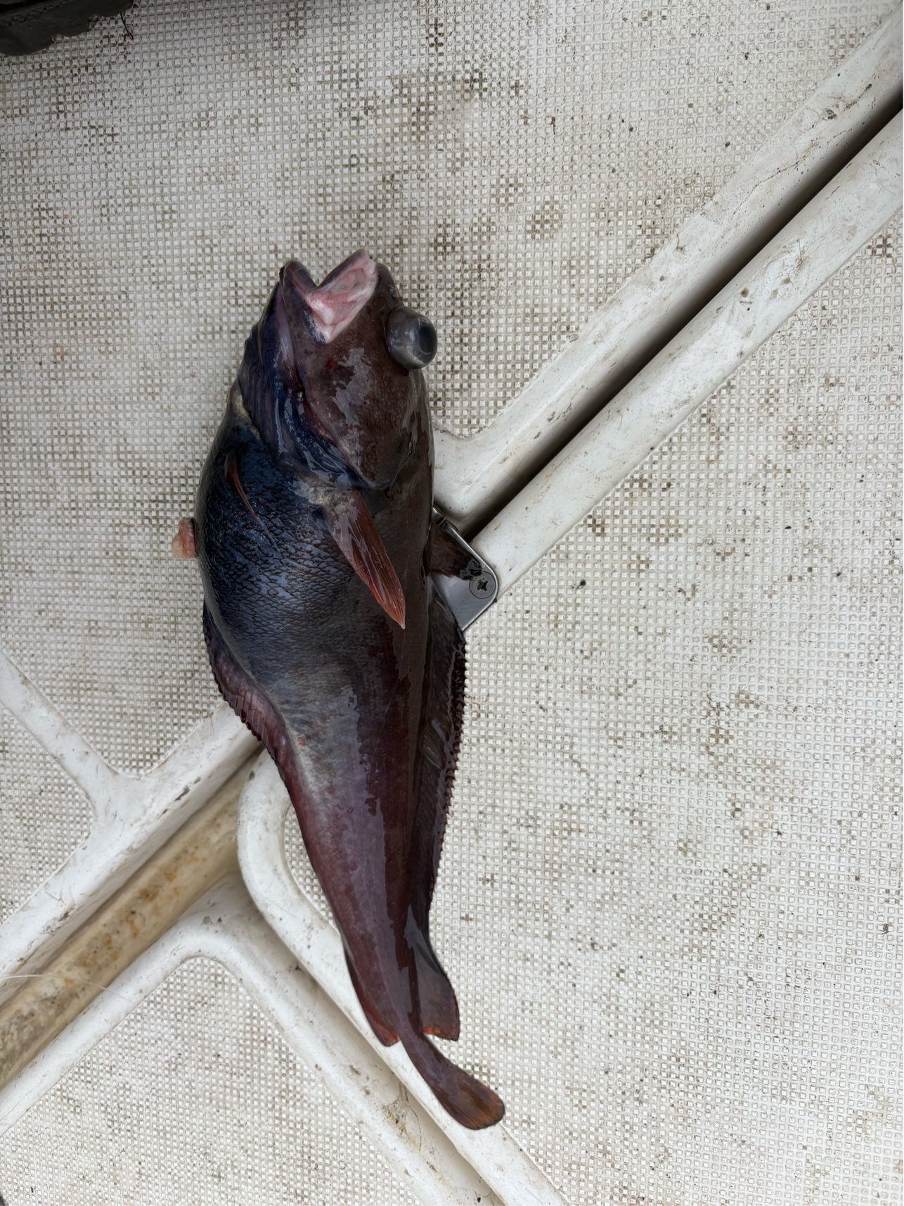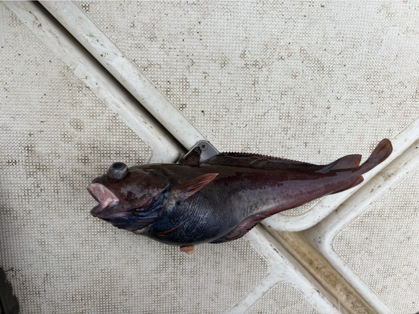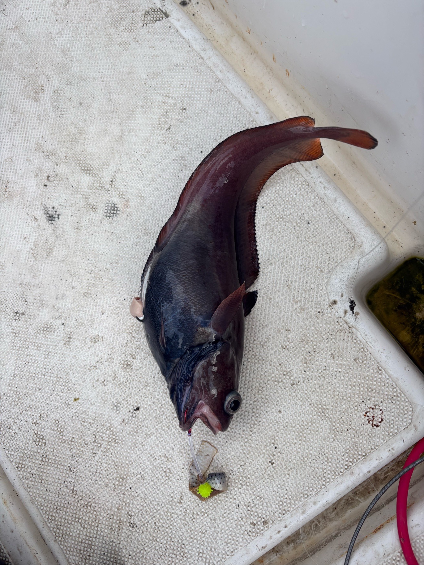 今日は終日割とまっすぐラインが入っていたので、そこまで潮は速くなかった様子。 潮色は黒潮のような群青色でかなり澄んでいて、潮が気に入らないのか今日は船中アカムツの顔見られず、魚種問わず食い込みも浅かったです。 筋としては実績ポイントをいい感じに流れていたとのことです。