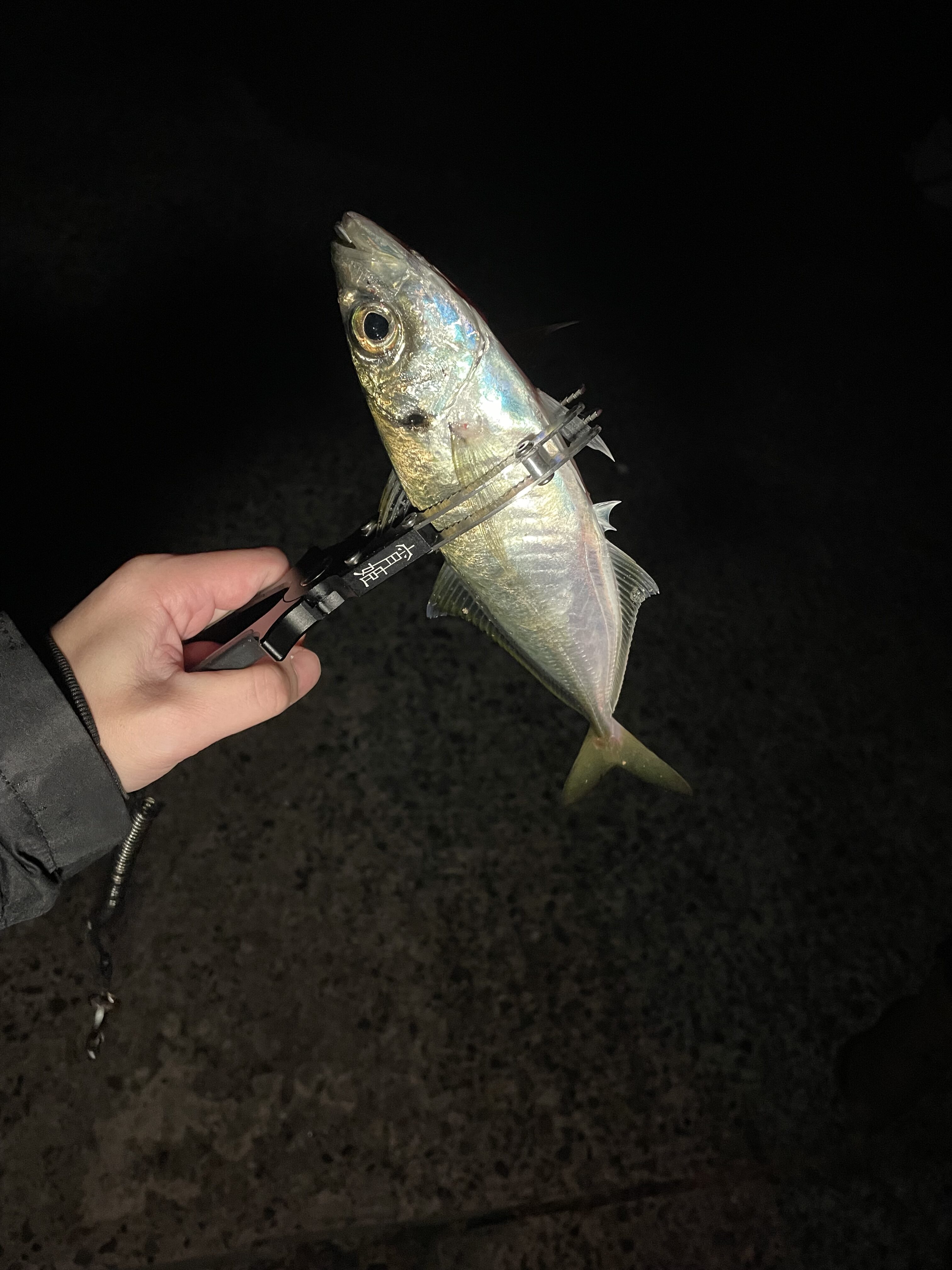 しかし釣れるのはノマセにはデカい20後半サイズばかり。食べる分はキープしたのでノマセ用のアジをキープする為に釣り方を変えます!デカいのは潮に流してボトム付近まで入れて行く。小さいのは中層辺りで軽めのアクション!バッチリハマり15匹ほど確保しました!仕事終わりなので朝マヅメまで少し休憩