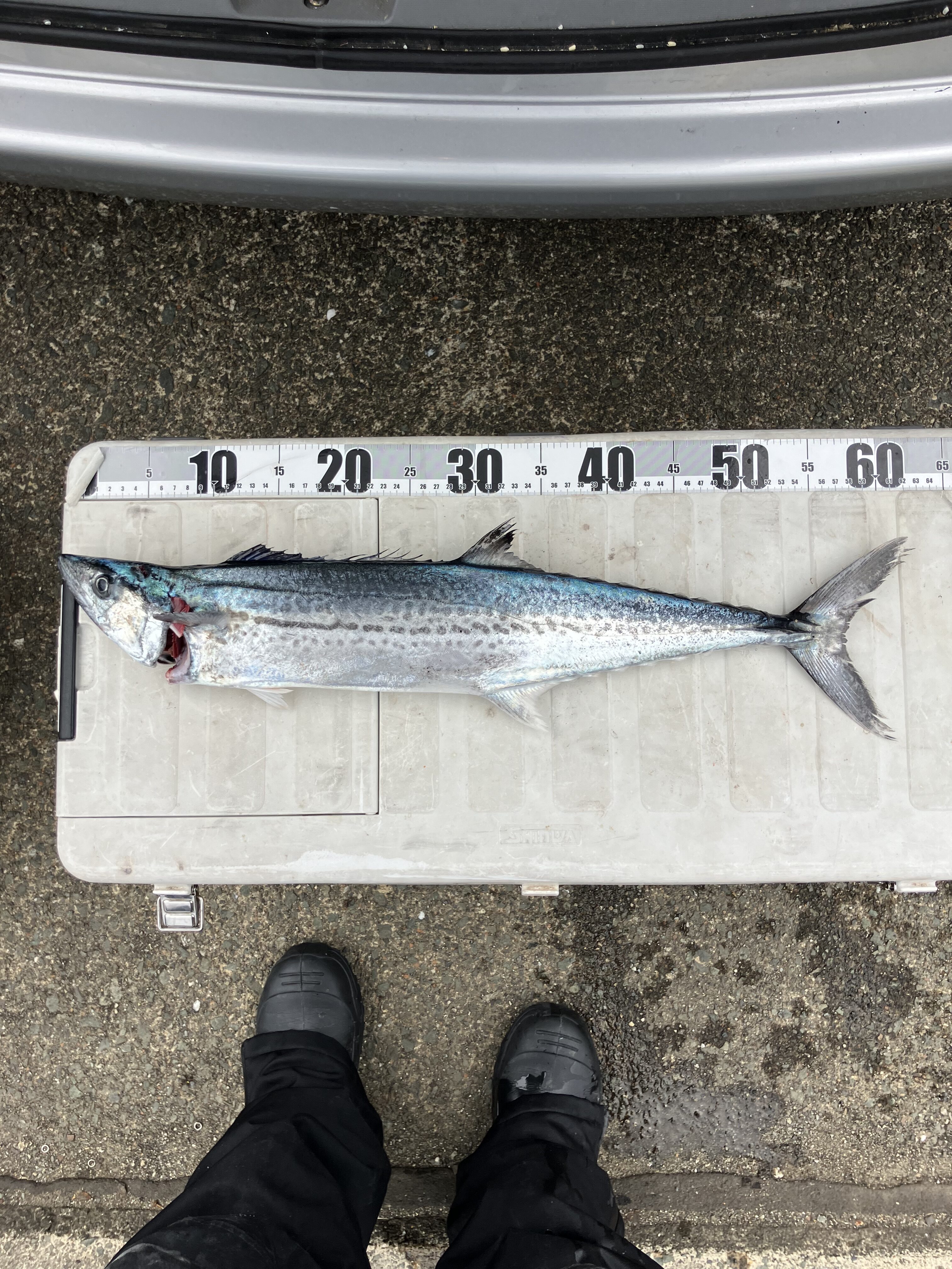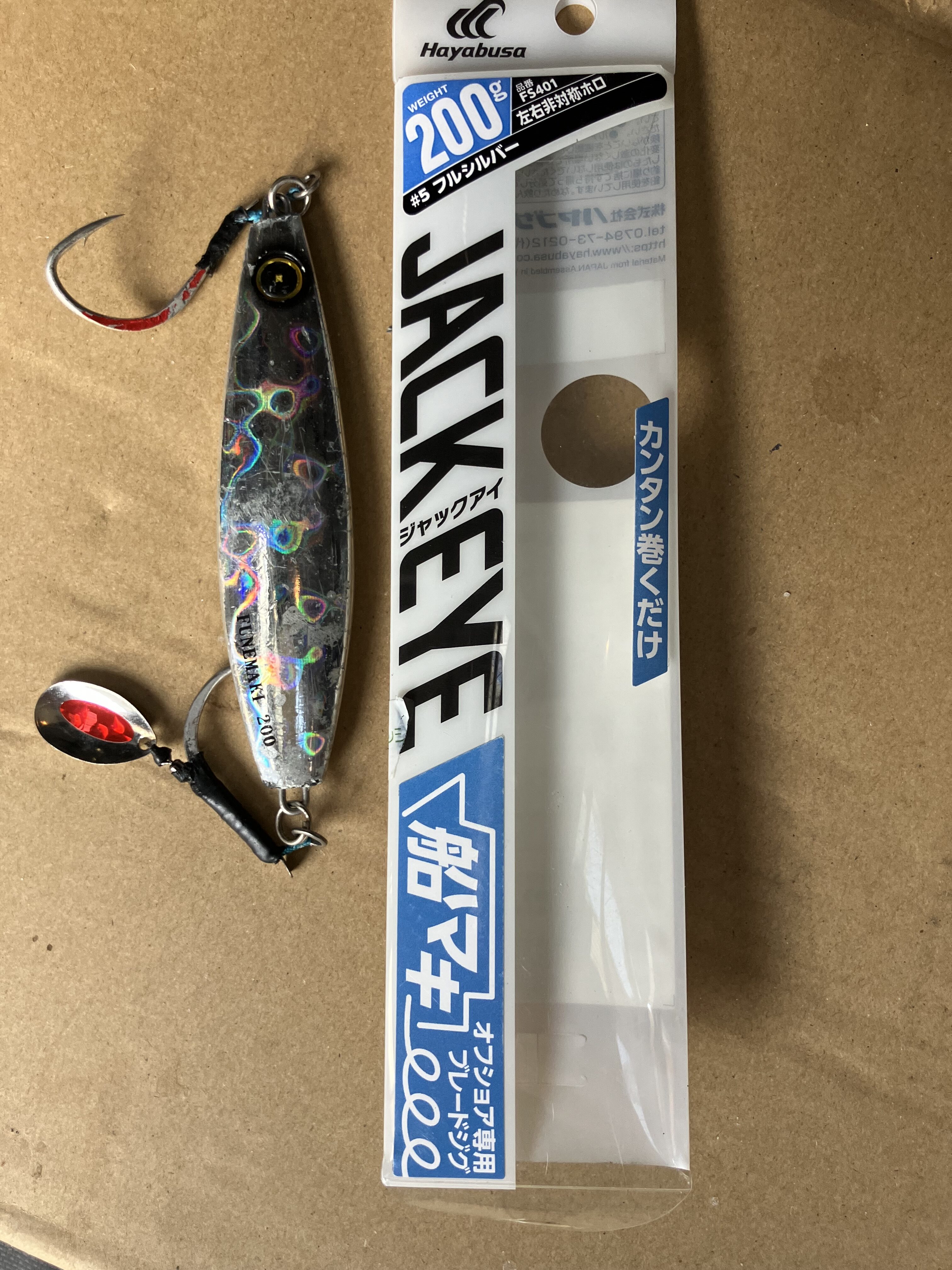 そして遂に待望のヒット!ボトム感度を追いかけてますが、中層回収ヒット、60センチサゴシでした。ヒットジクは前回もボウズのがれに繋がった、ジャックアイ船マキシルバーでした。しかし魚の活性は渋いままです。同乗人もサゴシでした。その後シーバス一本プラスして、渋いジギングを後にカワハギポイントへ…