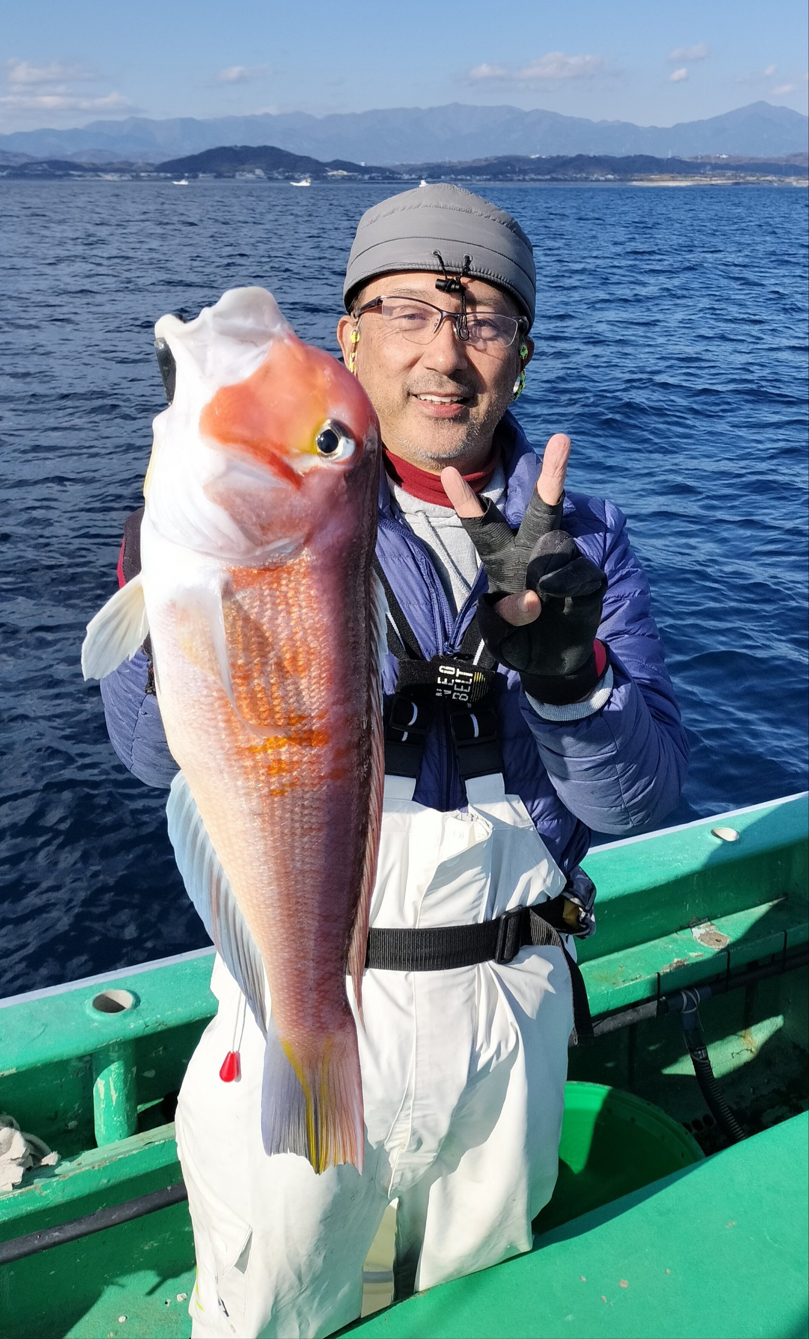 タモ入れもせずに抜き上げたのは48センチの大型アカアマダイでした!!😅😅😅😅😅
