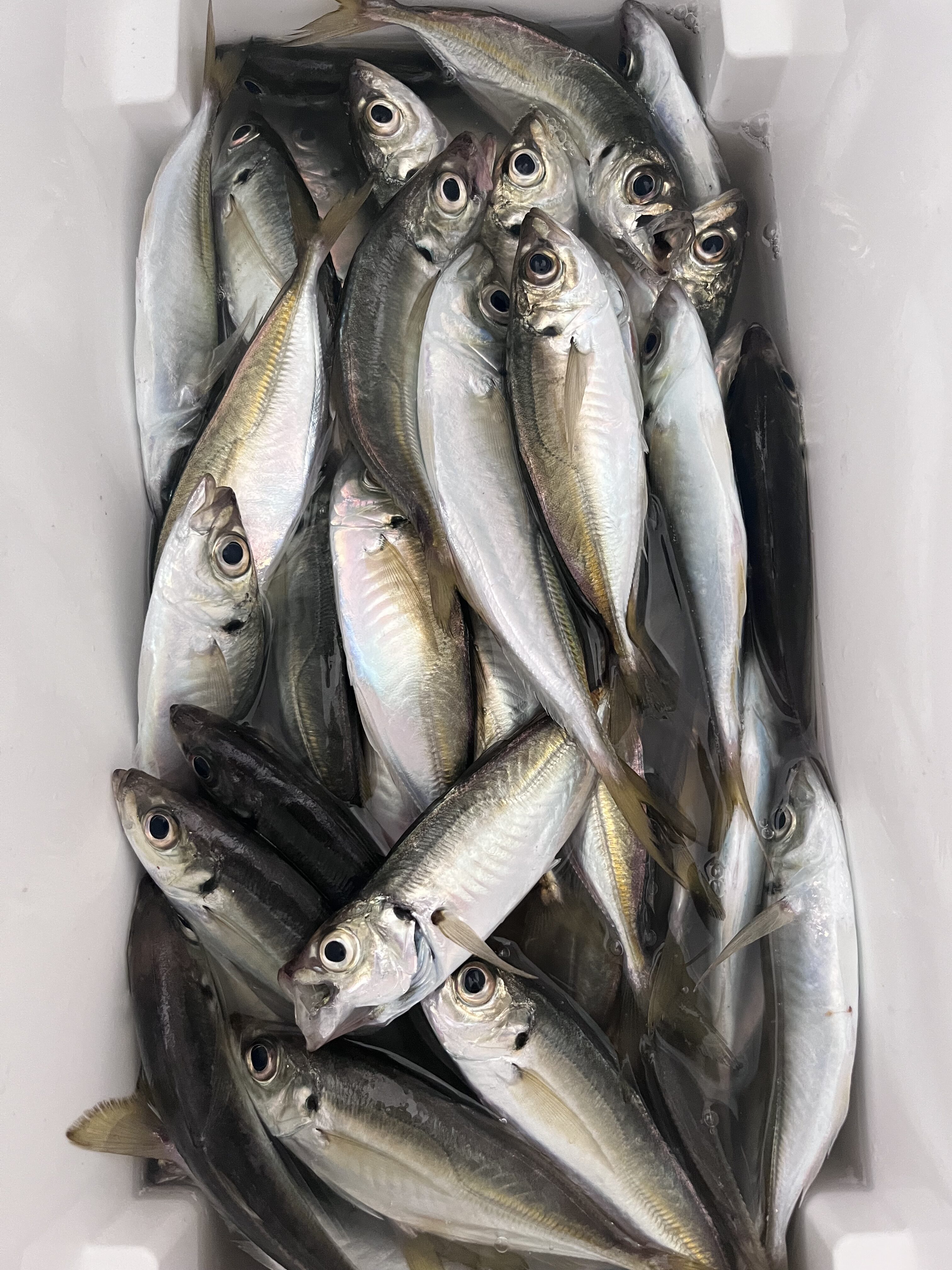 サイズは小さいが当たりがあるのが嬉しい限り☺️30匹程釣った所で中乗りさんによるレクチャータイムがあり暫し中断…😂💦もありましたが少しサイズアップしたり小ぶりとアジは半日通して釣れてくれてトータルで71匹(船中トップ竿頭145匹)という釣果となり午前11時納竿となりました✨