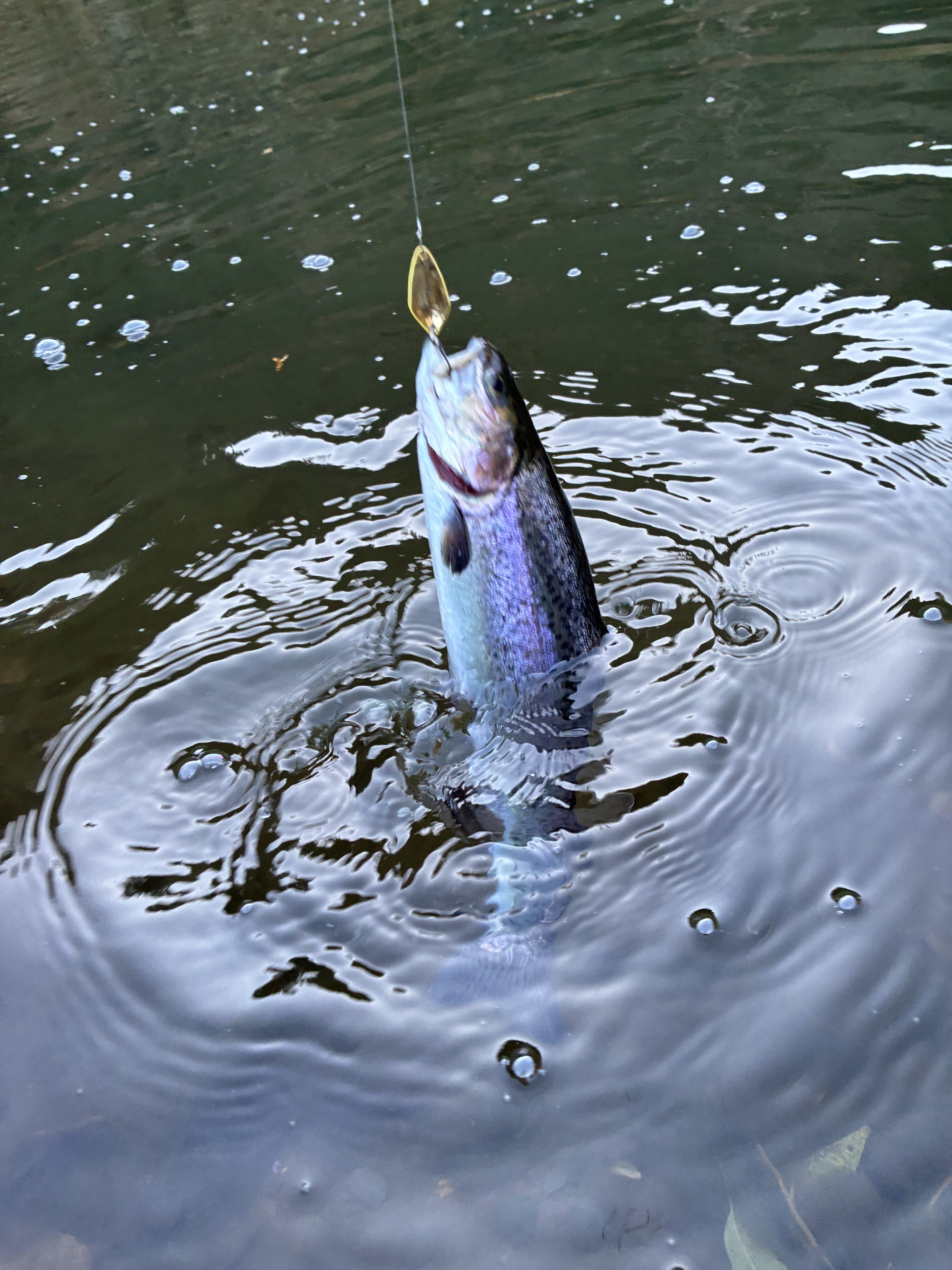 2026.01.05 印刷する 初のエリアに!INミッドクリーク! 魚種 ニジマス/レインボートラウト 釣り方 ☆エリアトラウト 場所 茨城県 スタッフ 浦田悠生 店舗 イオン相模原店 釣行日 2025.12.29 コメント こんにちは!イオン相模原店の浦田です🍒 今回は茨城県のミッドクリークに行ってきました!まずはクランクから始めてみますがチェイスすらない状況…初めてのポイントのためまずは水深から測る事に笑 意外と水深もあってどうやら魚は下の方に溜まっている模様!下の方に居る魚を取るためボトムプラグを投げますが、藻がすごくプラグでは釣りにならない状況のためスプーンでボトムを探っていく事に! そんなこんなやっていると朝の放流タイム!放流後も魚のレンジは下でしたが放流パワーで魚を追加!かなり放流の量も多いのか暫く釣れ続けてくれます! その後も池を移動したりして夕方まで楽しむ事が出来ました!この日は完全にスプーンメインでカラーの違い等で差が出る1日でした!朝夕は寒い日が続くので防寒はバッチリにしていくのをオススメします! 最後までご覧いただきありがとうございました🍒 使用した釣具 ロッド 【ダイワ】プレッソAIR61L リール 【ダイワ】ルビアス2000S