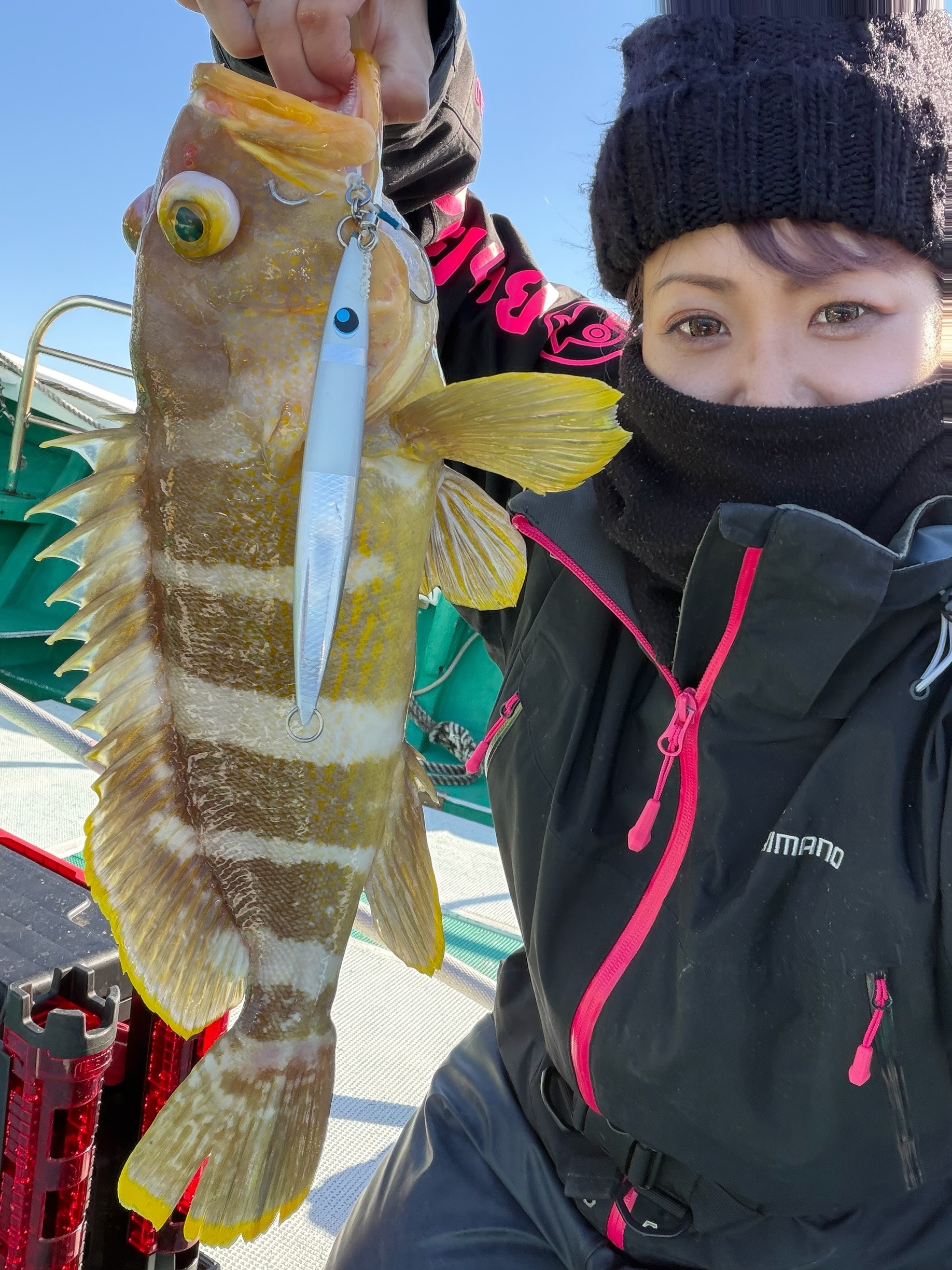 2026.01.05 印刷する 年末ジギング 魚種 カンパチ サイズ 45〜60㌢ 数 シオ カンパチ アオハタ 釣り方 ☆ジギング 場所 和歌山県 天候 晴れのち雨 スタッフ 朝野奈々美 店舗 リンクスウメダ店 釣行日 2025.12.29 コメント こんにちは☆ リンクスウメダ店の朝野です☆ 2025年ラストに久しぶりのジギングに行ってきましたッ カンパチ狙いのジギングです! 久しぶりすぎて体力持つか心配ですが2025年ラスト 釣りを存分に楽しんできましたあ🎣 前日の情報だとなかなか厳しい様子… 午前は釣果なしの午後にパタパタ釣れたそうで 今日も厳しいだろうと言う事で覚悟して出港 ジグ200gからのスタートで潮はなかなかなし ジグも変えたりしましたがあたりもなく… 昼前にやっと当たりが❗️シオが釣れましたッ ですがなかなか連鎖もなく…なかなか厳しい その後ポイント移動しながら腕も限界超えでしたが ギリギリのカンパチ釣れましたッ その後潮も流れてきてデカいの狙いでポイント移動 すると❗️初めてのアオハタ45㌢釣れましたッ 本日これで終了〜 狙いのカンパチ釣れて初めましてのアオハタさんも そこそこサイズ釣れて大満足でしたッ 使用した釣具 ロッド SHIMANO グラップラーBB タイプスローJ B66-4 リール SHIMANO オシアジガーFカスタム 1500HG ジグ ウロコジグ セミロング200g