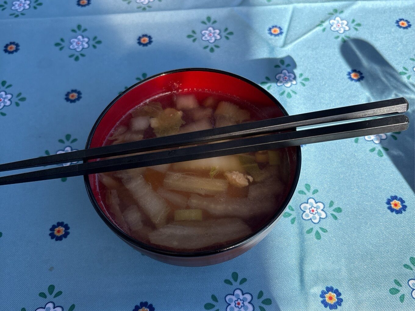 冬は温かいお味噌汁を振る舞ってくださるのですが、お正月モードで今日はお雑煮でした♪