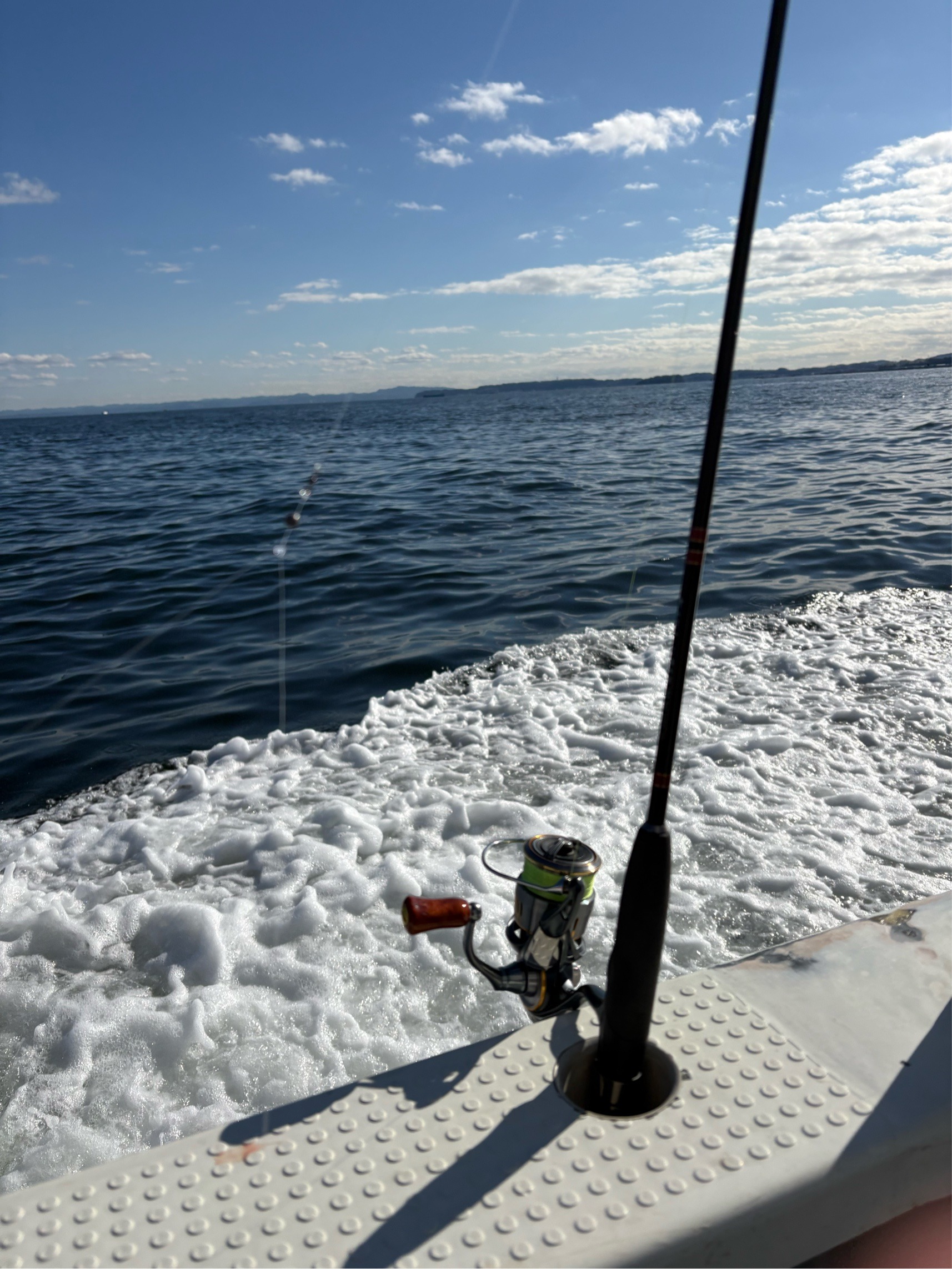 午前は2本竿の方が束越えとのことで期待できそうです。 乗船13名ほど?で、右舷トモから2番目に座り、今回も中ノ瀬へと向かいます。
