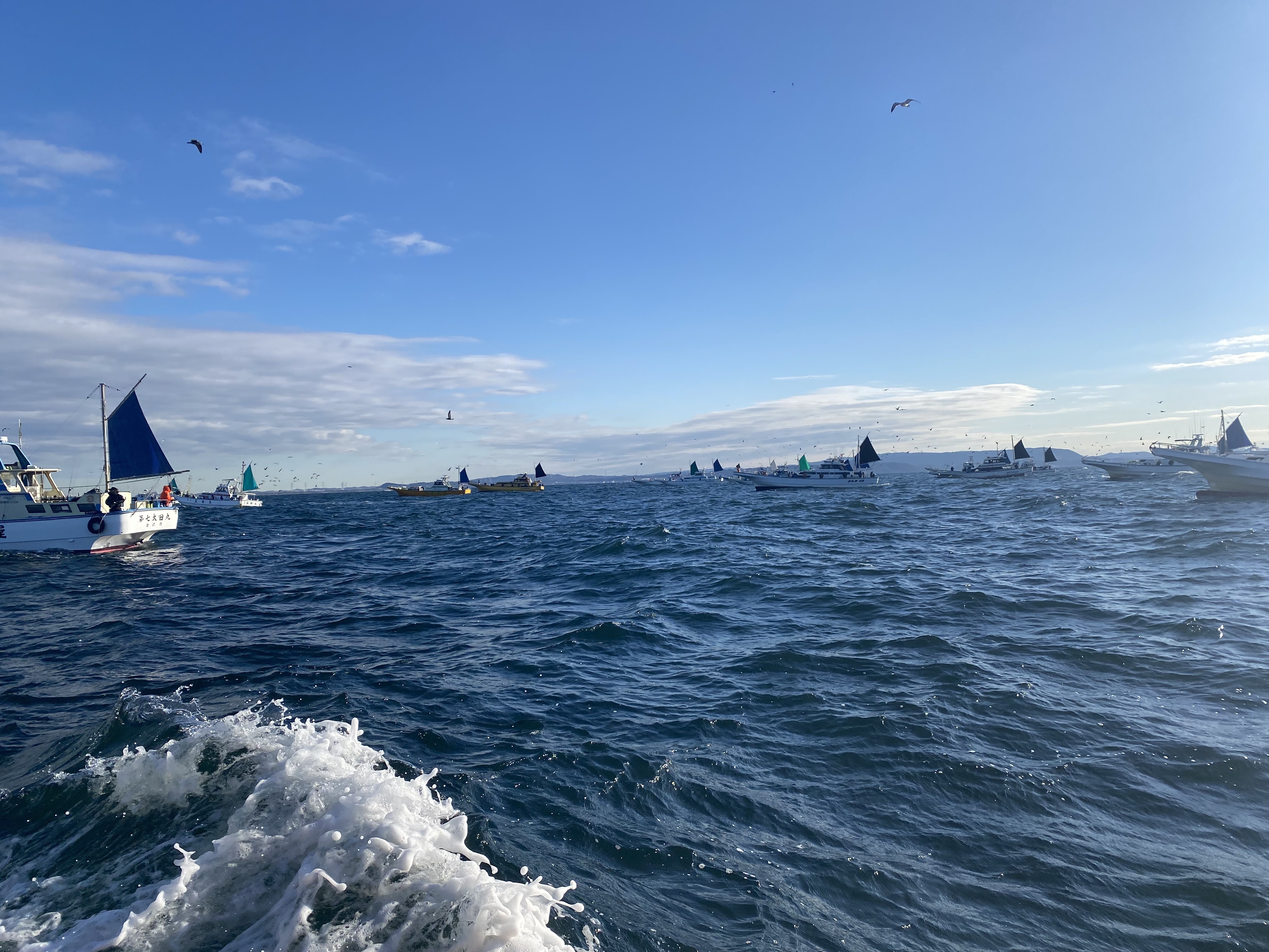 船着場からポイントまで40〜50分ほどで到着し、いよいよ開始です!周りにはタチウオテンヤ、ジギングの船が集まっており、観察しているとポツーリポツーリと釣れている様子❗️