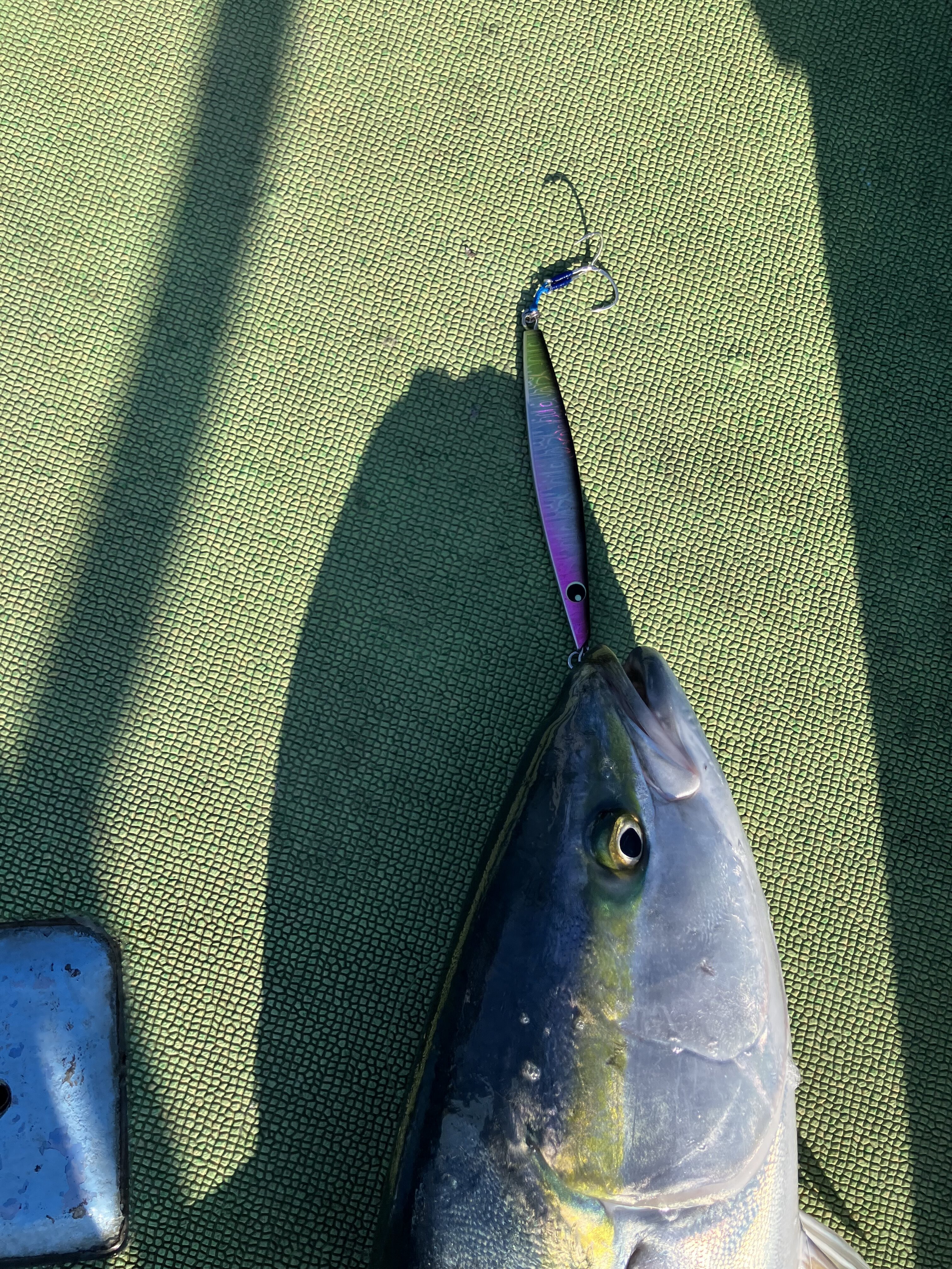 もし見つけたらタックルボックスにしのばせておいてください。その後同船者がFKジグ TGの赤金グローヘッドでワラサをスピニングで釣り、早まきの方がいいのか、その方が続けてヒット!