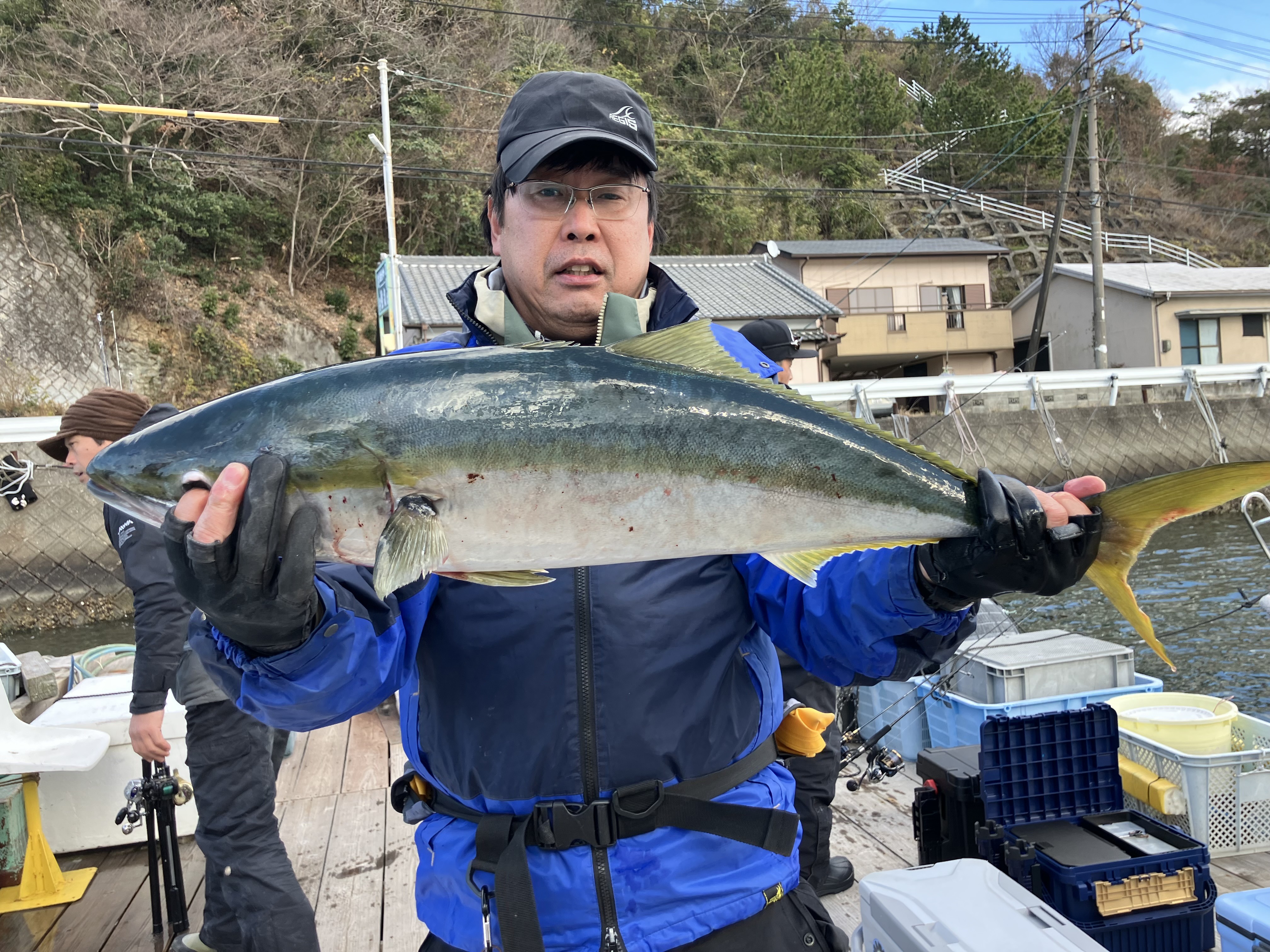 さて、肝心の釣りですが…同船者さんは、ショートジグを選択されているので、見習い、サーディンウェーバー160gでスタート!水深約60メートル、適度に潮が流れてます。思いのほか風もなく、釣り日和です。しかし釣り日和は釣れる日和にはならないとよく言われます。船中1時間半程沈黙…私もアレやこれやとジグを変えますがあたりなし…ここで一旦ショートに見切りをつけて、ツダジグバスター165gを投入、するとに、待望のヒット!2026年初ヒットandフィッシュです。フッキングの際はドラグを締めその後はやや緩め、慎重にやりとりします。しかし日本海仕様の4番パワーのロッド、8000番リールの為、慌てずロッドに仕事をして貰えば、難なくブリサイズでもあげられます。ほどなく無事にランディング!