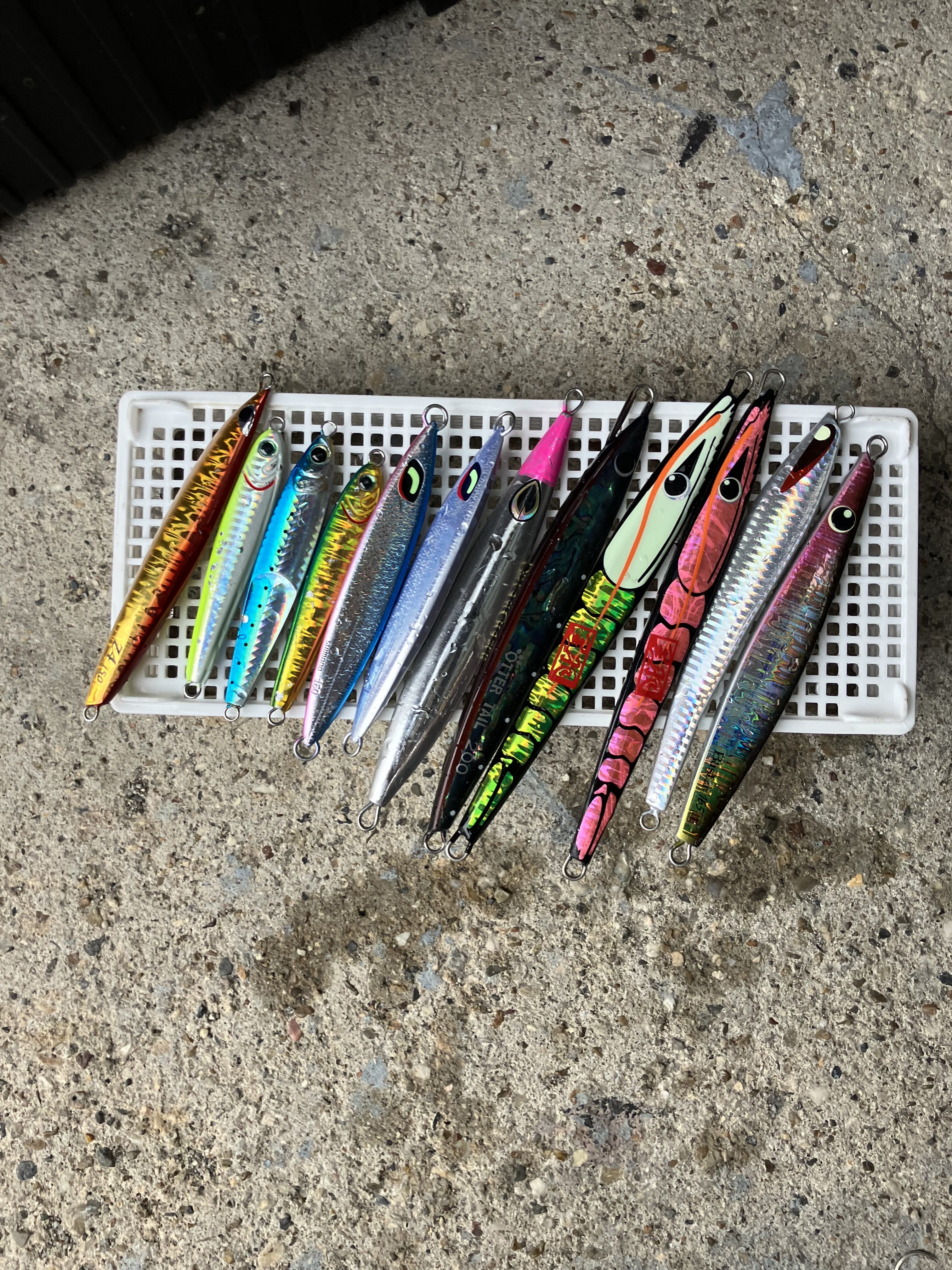 今回お世話になったのは鳥羽から出船の強丸さんです。受付を済ませ、右舷艏に乗り7:00出船です。30分弱で伊勢湾沖のポイント到着。同船者のジグを見せてもらうと、この海域では、太刀パターンを過ぎれば冬はショートジグがメインとの事、TGベイトを筆頭に頑鉄ジグ、あいやータナジグ、QUICK ZERO1など日本海側のセミロングとは全く違うラインナップです。地域、海域によって狙う魚は同じでもジグが異なるので難しいですね。