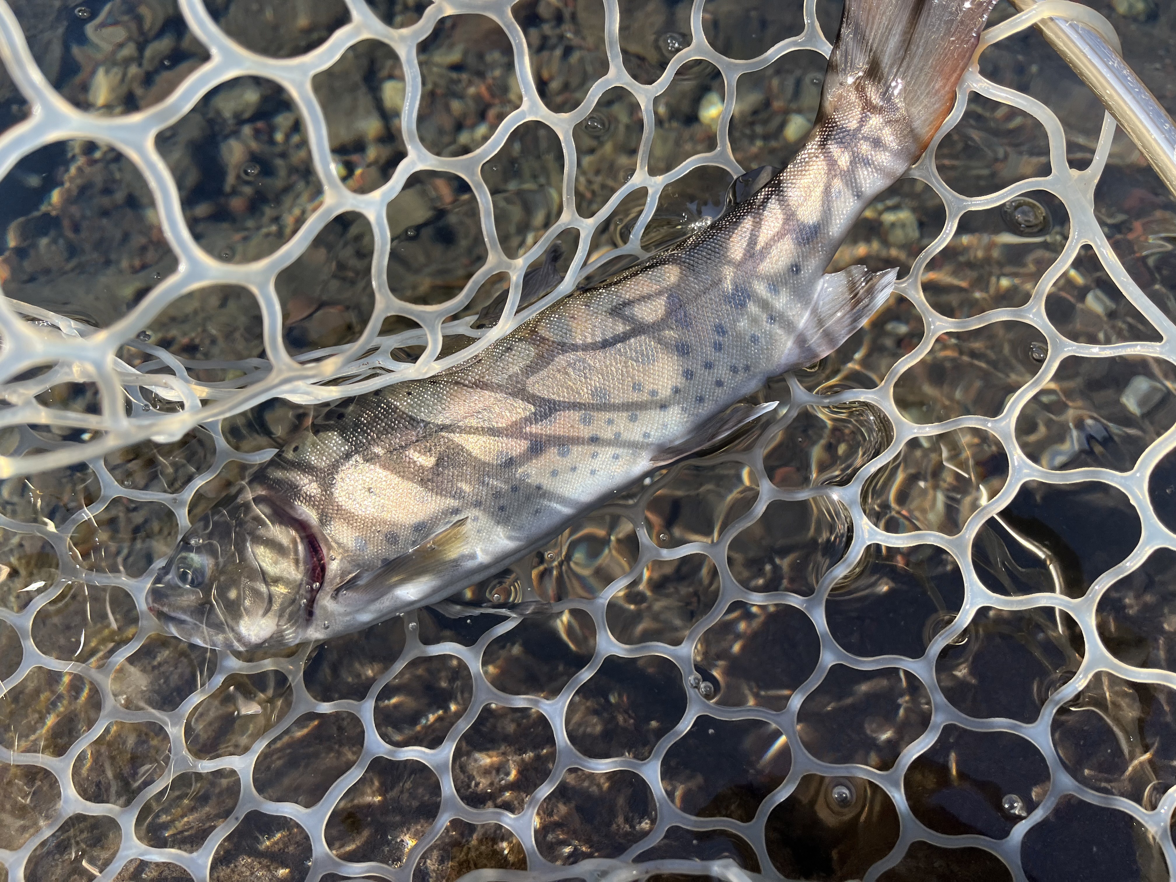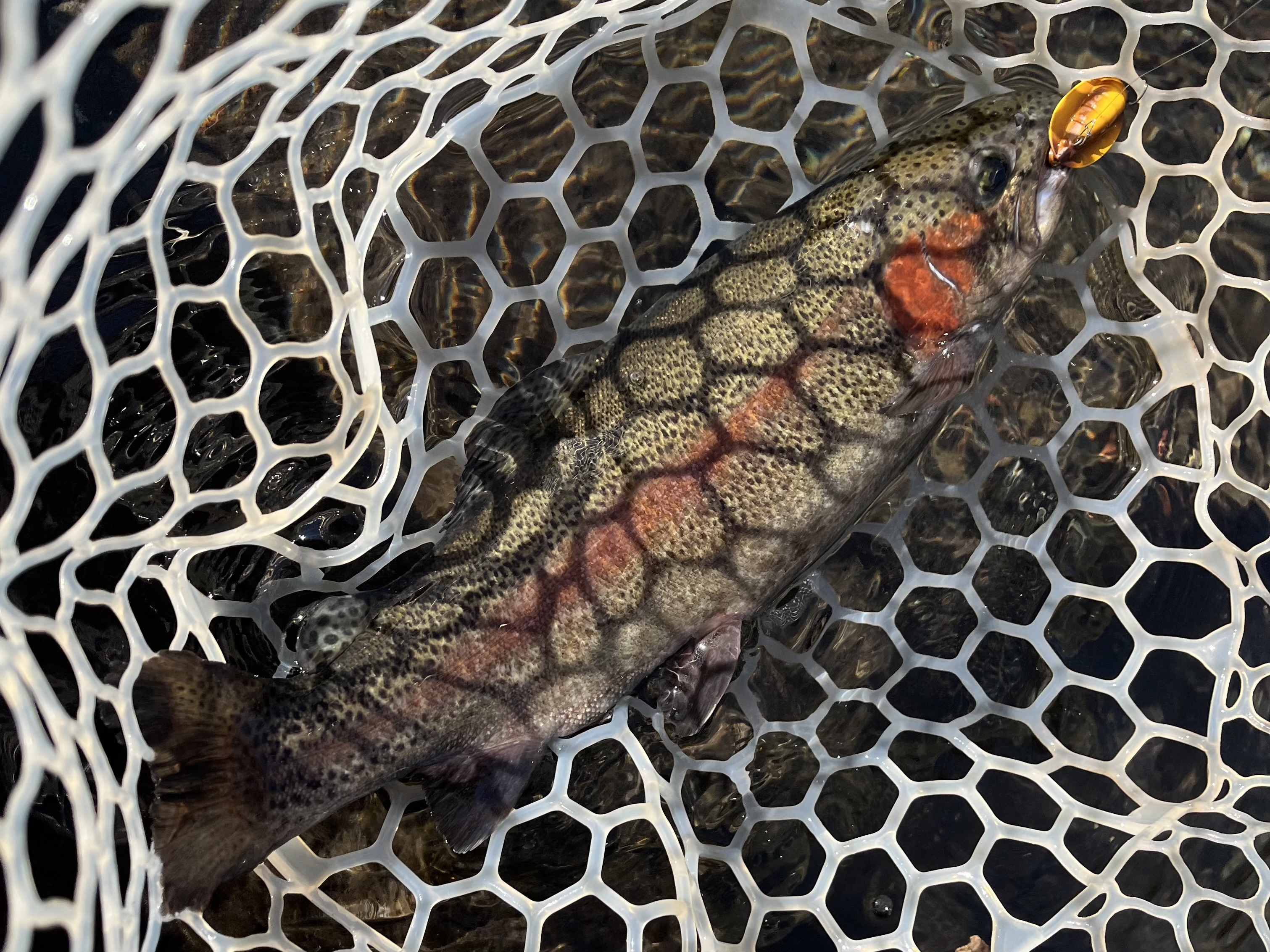 2026.01.12 印刷する 高田釣行便 すそのFP 魚種 トラウト ニジマス/レインボートラウト 数 42尾 釣り方 ☆エリアトラウト 場所 静岡県 スタッフ 高田 航綺 店舗 名古屋小牧店 釣行日 2026.01.05 コメント 名古屋小牧店スタッフ高田です!! 今回は、エリアトラウト!静岡県の「すそのフィッシングパーク」へ行ってきました! 朝4時頃に到着して列待ち! 前から3人目でした! 8時になり支払いを済ませ実釣開始! 上池、事務所前の魚が溜まりやすいところに陣取りスタート🐟 開始早々デイジー1.3gでヒット! エステル0.3号タックルを今回から導入していたのですが、元気なすそのの魚は細糸だとなかなか寄ってこない💦 何とか寄せて 未計測ですが、40cmクラスの良型白身👍 その後も、ベルニョロやジグザグマジック、ディープカッパー、ハイドラムFなどたくさんのルアーで釣れ ヤマメも釣れました🐟 渋い時間もありましたが、手を変え品を変え釣り続けトータル42尾でした! キープは40弱ほどの白身を6本頂きました😆 僕の夕飯になってもらいます🍚 普段店にきてくださっている愛知県の皆様には遠いかもしれませんが、東海地区のエリアではなかなか感じることが出来ないアベレージサイズのデカさをビシビシ感じることが出来ます✨️ 魚がつきやすいポイントやおすすめルアーなどお伝えしますので、ご釣行の際は是非、つり具のブンブン名古屋小牧店までお越しくださいませ🍀 ではまた!👋 使用した釣具 ロッド 鯵道3G 5102L-S リール ルビアスST SF2000SS-P
