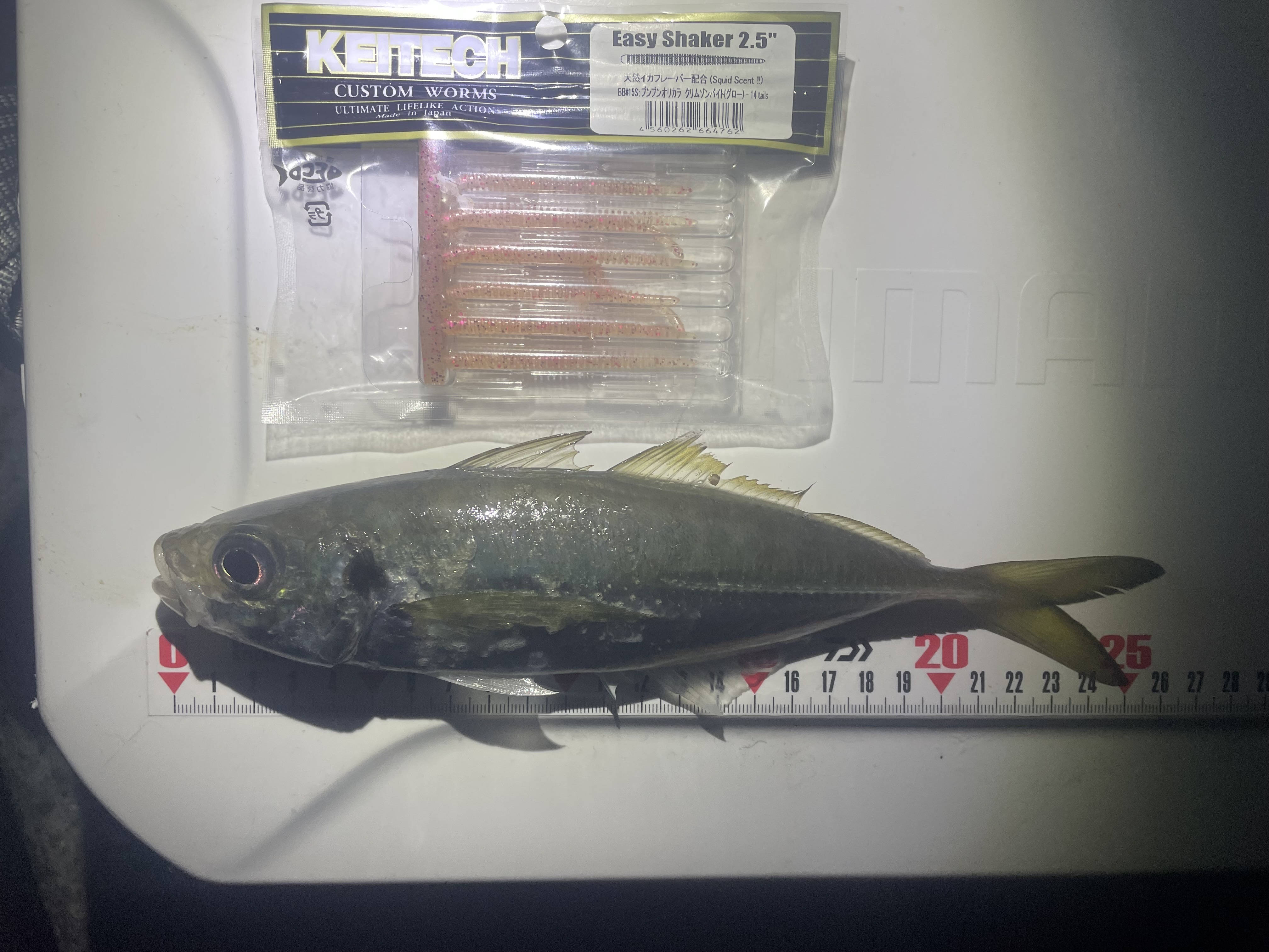 だいたい50メートルくらい投げたところで、たまってるみたいで、そこからは最後まで当たり続けて、30匹を超えたところで終了としました😁