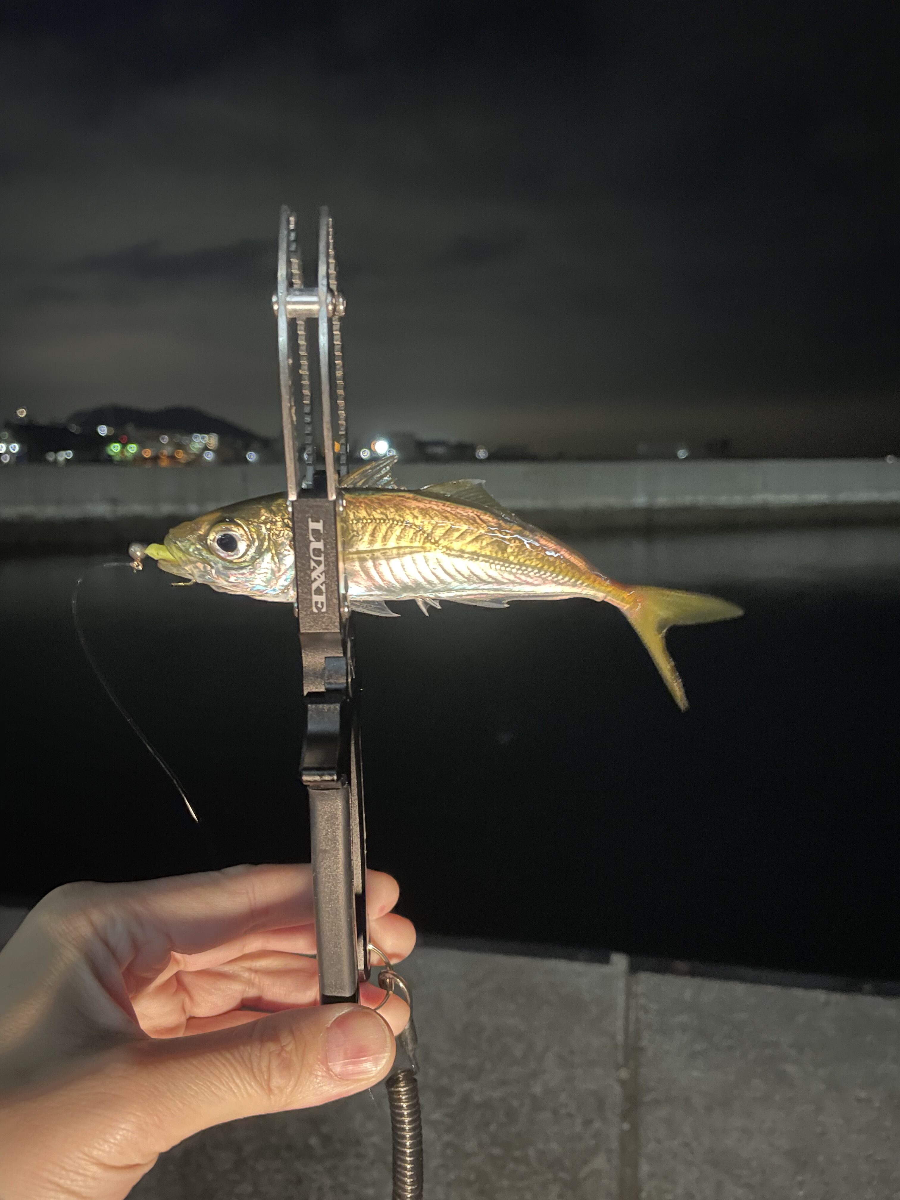 2026.01.16 印刷する 豆アジングへ 魚種 アジ 数 豆アジ 釣り方 ☆堤防釣り ☆アジング 場所 兵庫県 スタッフ 濱田 有 店舗 高井田店 釣行日 2026.01.16 コメント 連休最終日、自宅でボケっーとYouTubeを観ていたら釣り友からLINEが 豆アジングしよって事で 誘われたら行くに決まってます!アジの南蛮漬けにアジの唐揚げ!豆アジには豆アジの良さがあります! すぐに準備をして待ち合わせ場所へ 常夜灯もしっかり効いていて、オーラ抜群です 久々に使う宵姫華弐S54AL。このロッド軽い物を扱うには抜群の使用感に感度😉 ではキャスト!0.5gに1inch程のワームをつけてふわふわ〜 コッ!小さい当たりも見逃さずGET 来ました!狙い通りの豆アジ✌️ その後も同じ様に表層から中層の間をふわふわ〜 カウント5秒ほど またまた!カッ。当たりがありました いやー久々に豆アジングも楽しい😃 沈めすぎるとこの子が釣れます ガシラ🐟 明日も仕事なのでまだまだ続けたい気持ちはありましたが帰路へ🥲 もう少し欲しかったですが、南蛮漬けか唐揚げにしたいと思います! 豆アジングゲーム性もあり楽しいですよ👍これからも釣れますので タックル相談などは高井田店濱田まで是非 お待ちいたしております🙇 使用した釣具 リール エアリティSTSF1000S-P ロッド 宵姫華弐S54AL ジグ 月下美人TG0.5g