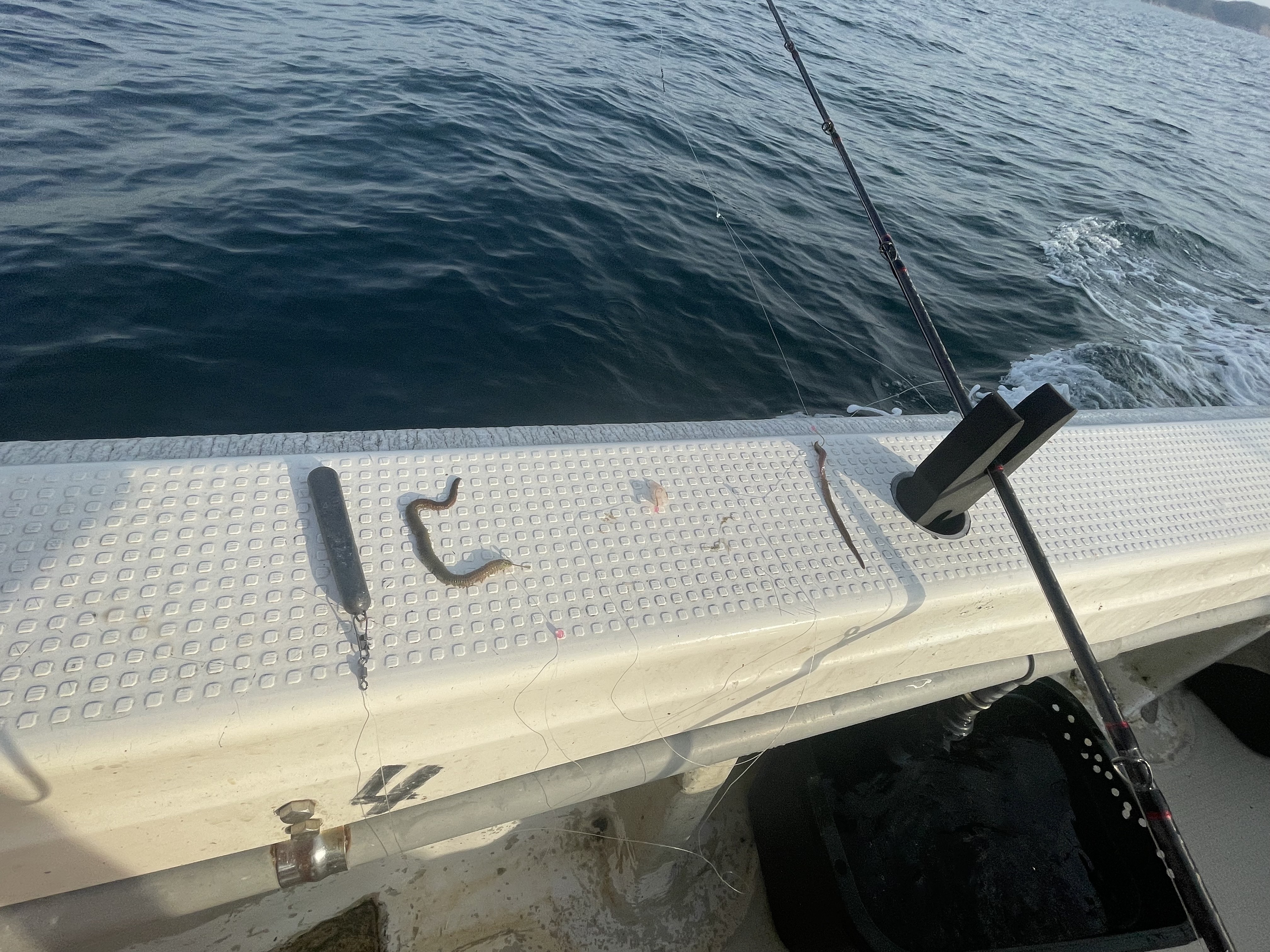 当日は朝一に良い潮の流れがでていて、朝一がチャンスという事で、3本針に上下に青イソメ、真ん中にオキアミでやっていきます。