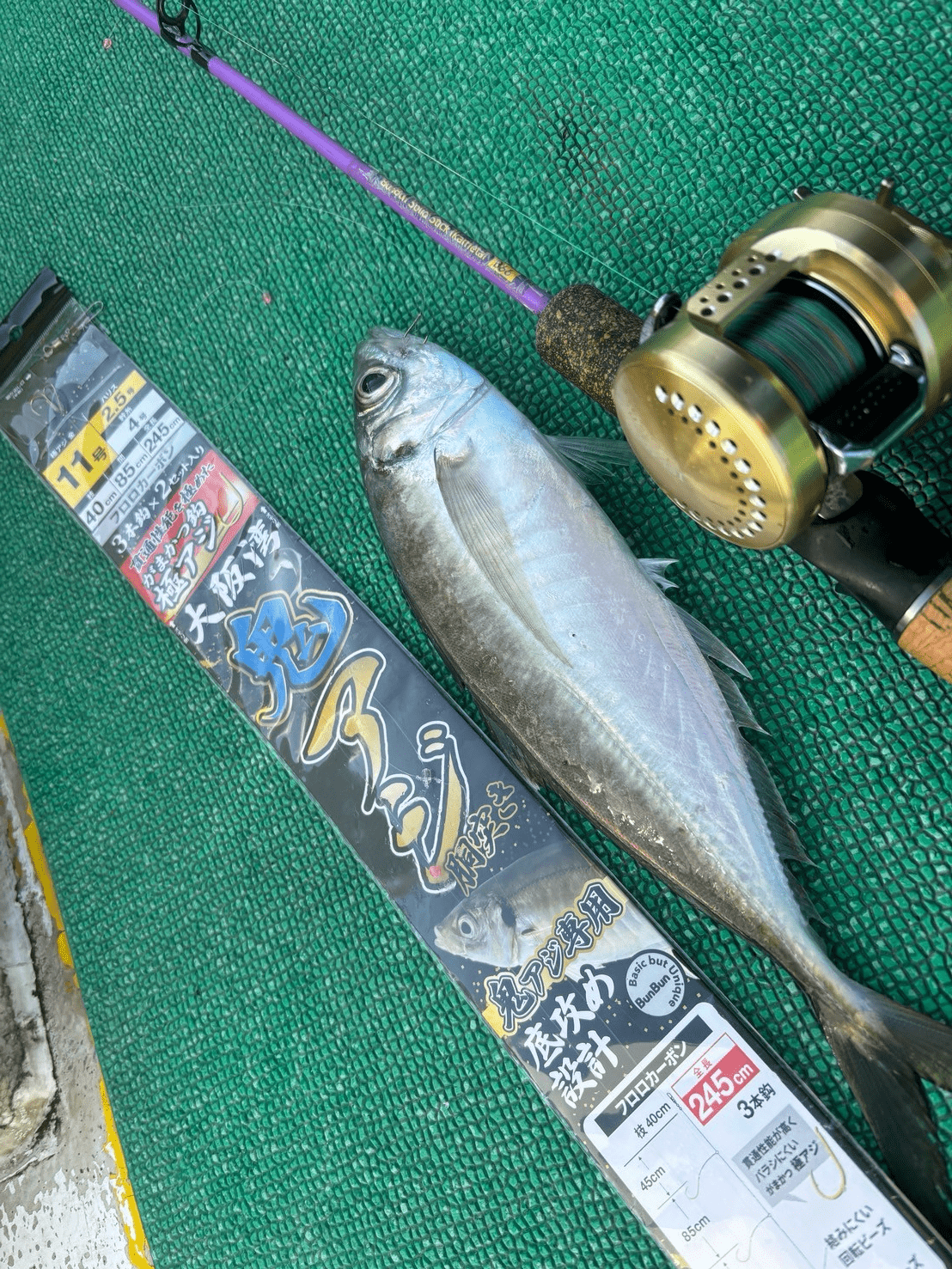2026.01.19 印刷する 気軽にアジ釣り 鬼アジ@大川丸さん 魚種 アジ サイズ 29cm 数 アジ 6匹 釣り方 胴付仕掛け 場所 大阪府 天候 晴 スタッフ 角田 彰久 店舗 リンクスウメダ店 釣行日 2026.01.15 コメント みなさんこんにちはリンクスウメダ店の角田です。 お客様のK様が初釣りに行きたいという事で、大川漁港にある大川丸さんにお世話になって鬼アジ狙いに行ってきました。 <当日使用タックル> 竿:エンゲツSS 一つテンヤマダイ B240HH/LEFT リール:オシアジガー1501HG PE2号 仕掛け:ブンブンオリジナル「大阪湾鬼アジ胴突き」 <釣行状況> 6時出船で船は友ヶ島南沖に到着しました。 当日は朝一に良い潮の流れがでていて、朝一がチャンスという事で、3本針に上下に青イソメ、真ん中にオキアミでやっていきます。 投入から3投げ連続ヒット。 流しなおしてヒットしたのですが、取り込みの時にフックアウト。 それから潮が落ち着いてきたのか、当たりが減りました。 2時間ほど頑張って、大きく場所を変えます。 少し深めのポイントに移動しました。 それから2匹ほど追加しましたが、その後はまた当たりが遠のきます。 友ヶ島の北側にポイントを移しましたが、そこで1ヒット。 それからはあまり潮が動かず、11時半に終了しました。 大阪からも手軽に楽しめる鬼アジつり つり具のブンブンリンクスウメダ店でも、オリジナル仕掛けを含め多数の道具をご用意しております。 釣行の際には是非お立ち寄りください。 使用した釣具 竿 エンゲツSS 一つテンヤ真鯛 B240HH/LEFT リール オシアジガー1501HG 仕掛け ブンブンオリジナル「大阪湾鬼アジ胴突き」