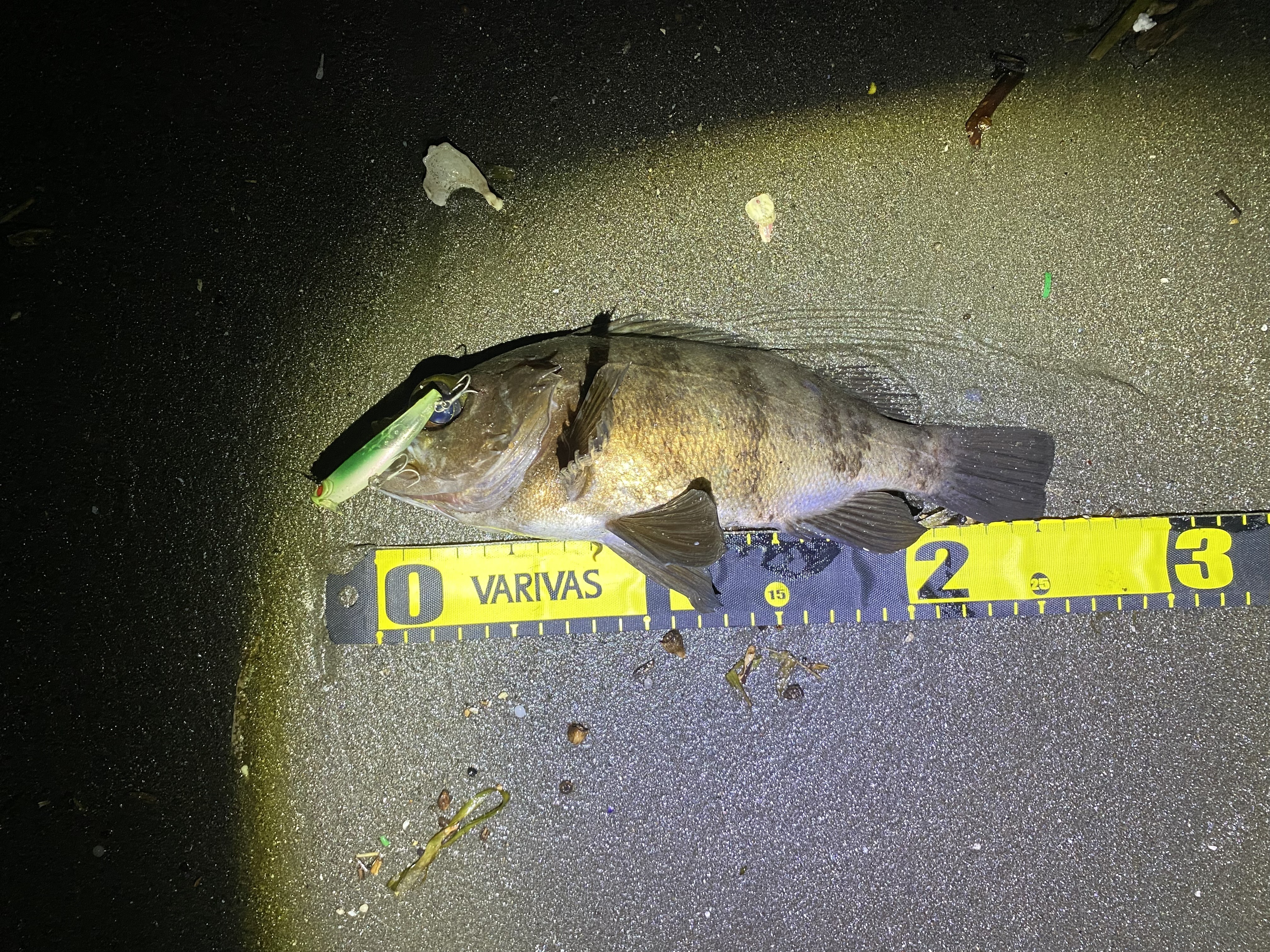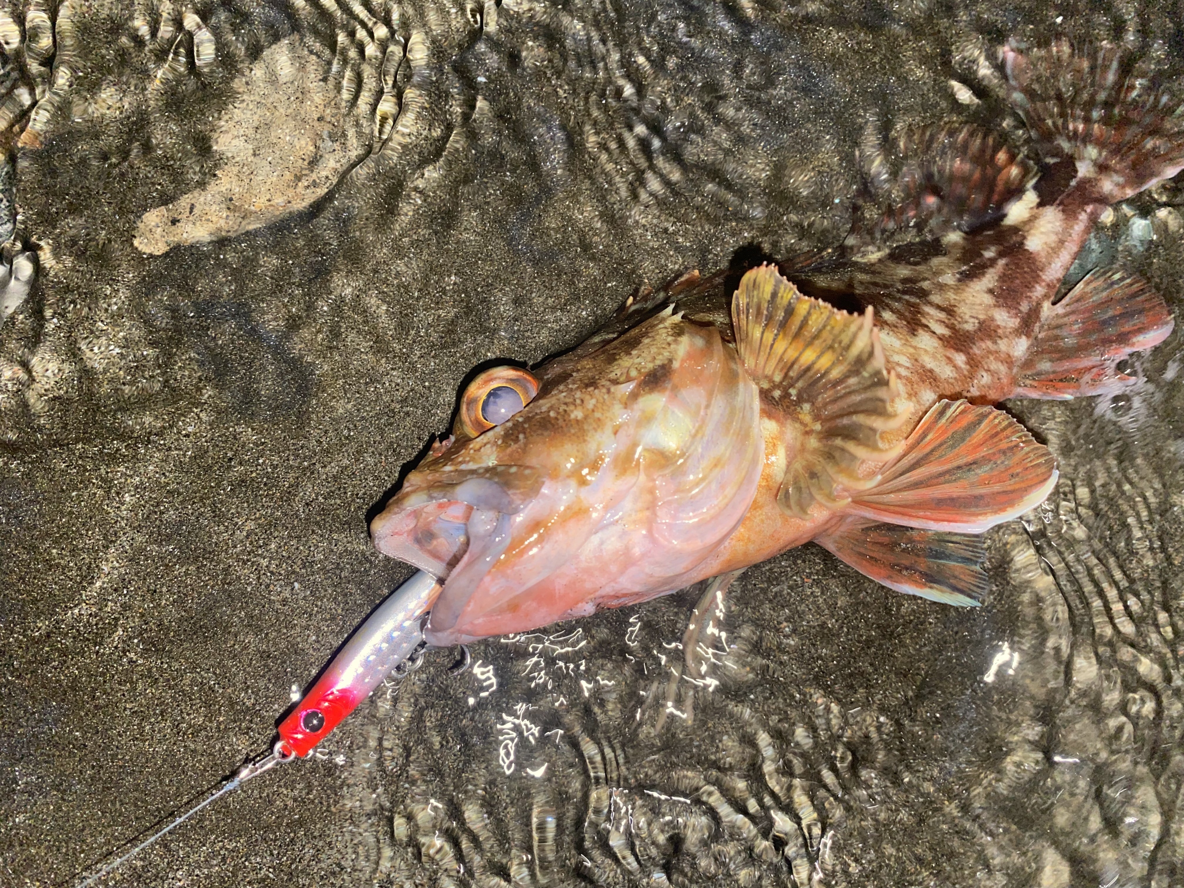 2026.01.21 印刷する メバリングin三浦半島 魚種 カサゴ/ガシラ メバル サイズ 25cm 数 メバル/2匹 カサゴ/1匹 釣り方 ☆メバリング 場所 神奈川県 スタッフ 木村 優太郎 店舗 イオン相模原店 釣行日 2026.01.20 コメント 相模原店の木村です! 今回はメバルを釣るために、三浦半島へ行ってきました‼️ この日は南西爆風の予報だったので、風裏になる場所を探してポイントに入りますが、風向きがしょっちゅう変わってしまいやり難い状況😭😭 磯なら風を避けられるのでは??と思い一か八かで磯絡みのサーフへ入りました!すると予想通り❗️後ろの崖?山?が風を背負ってくれます❗️ ここまでで2時間ロス… 外洋では飛距離を出した方が絶対的に有利なので、アピア パンチライン60からスタート❗️中々生命反応が無く、今日はボウズかなと思いながら星を眺めているとプルンとアタリが!!25cmちょいの良型が釣れてくれました。 カサゴが釣れるということはレンジが深すぎるのか🧐表層をスローに引いてこれるアピア ハイドロアッパー55に変更してスリットを通すとまたまたヒット❗️今度は本命のメバルでした‼️その後も1匹手のひらサイズを追加して寒すぎるので納竿としました 良型メバルを狙うならサーフ、小磯、岩礁サーフがオススメです❗️ これからがハイシーズンのメバリングをやってみてくださいませ! 使用した釣具 ロッド シマノ ソアレエクスチューン706UL-T リール シマノ 18ステラc2500SXG