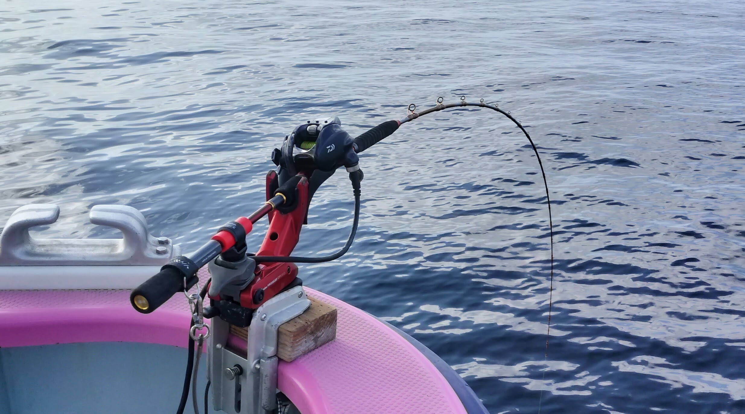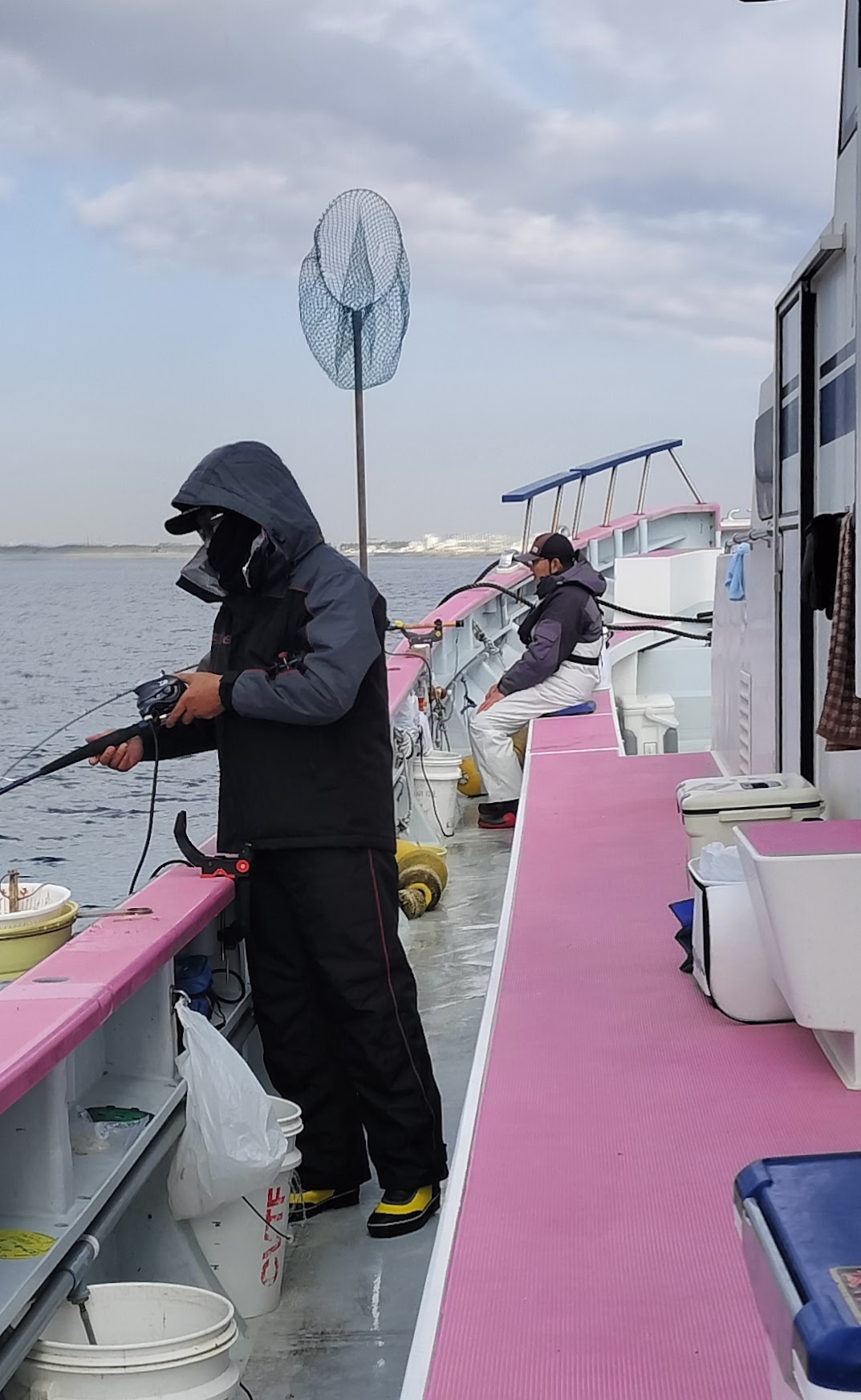 移動後のK根では船長からの指示が水面から30mだったので、4mほど多めにコマセビシを沈めてからコマセを出して置き竿でアタリ待ち。