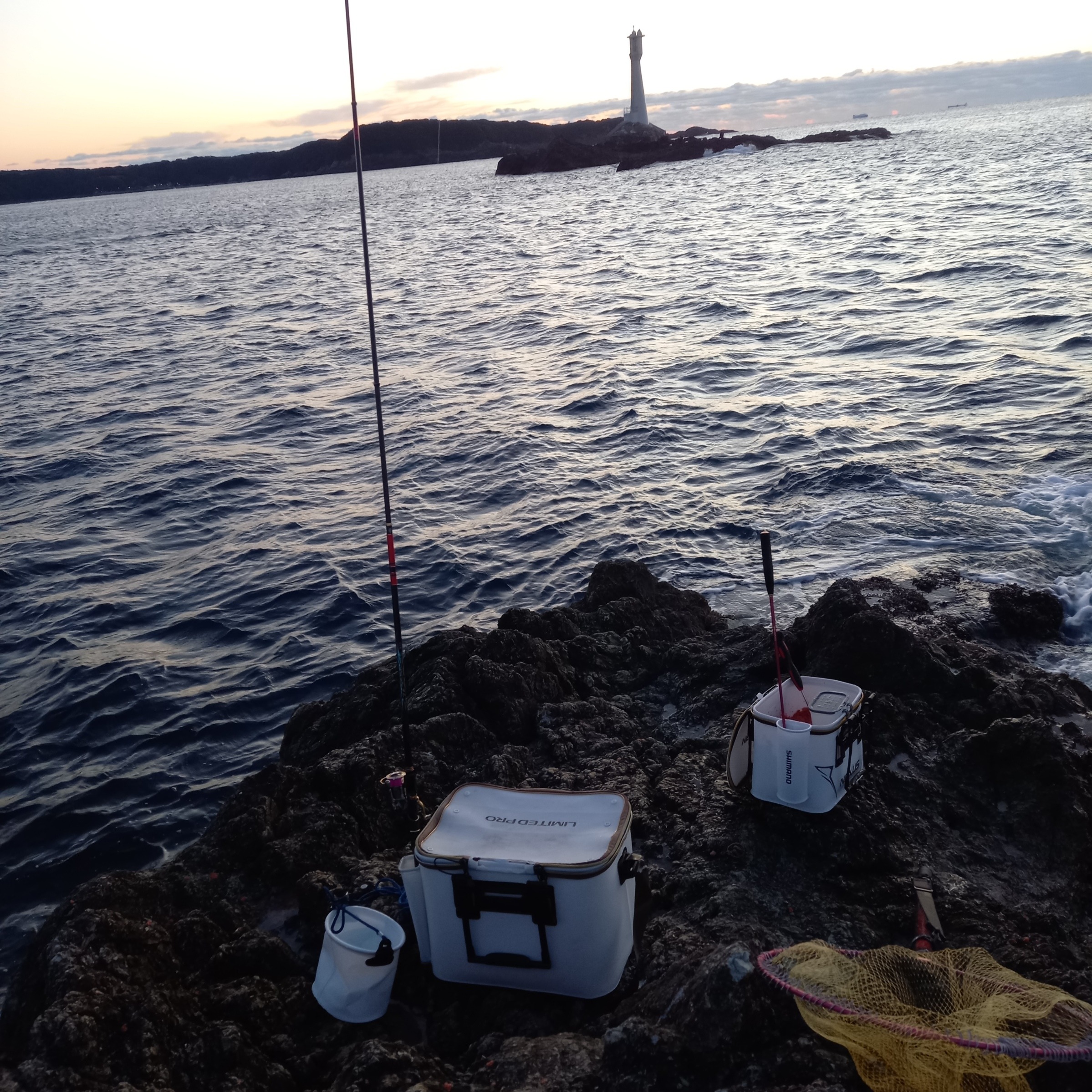 この日は奇数日で沖磯アシカ回りの当番、昼前から強風予報で12時頃には磯変わりかなと思っていましたが上げてもらった磯は港出てすぐの「地のカンゴメ」。ここはよっぽどのことがない限り撤収不要の安全磯で和歌山での自己記録もこの磯で釣っておりお気に入りの磯です♪