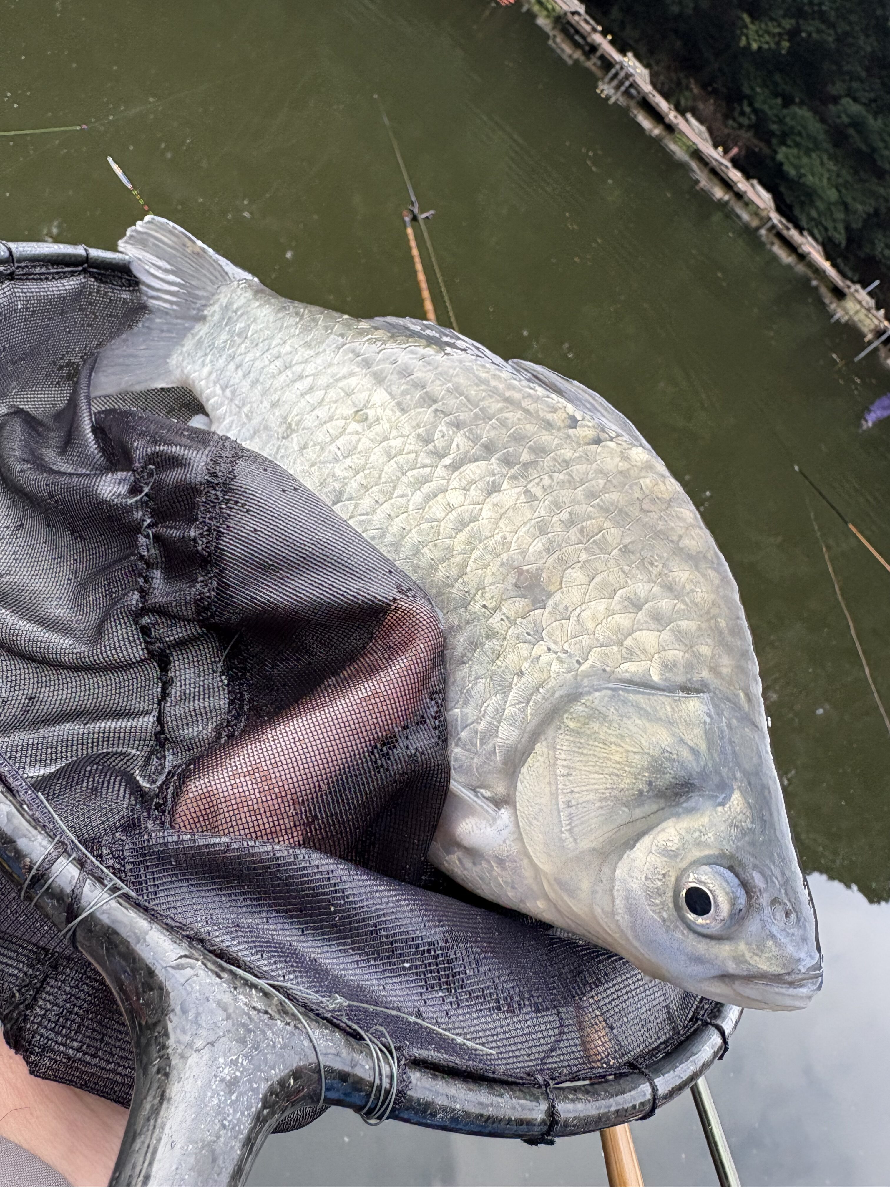 セッティング的には、浮子は風馬type-Sの5番で、ハリは角マルチ2号。ハリスはやや長めの60から入りますが、平日なので魚がいるため最短で45cmまでは詰められました!