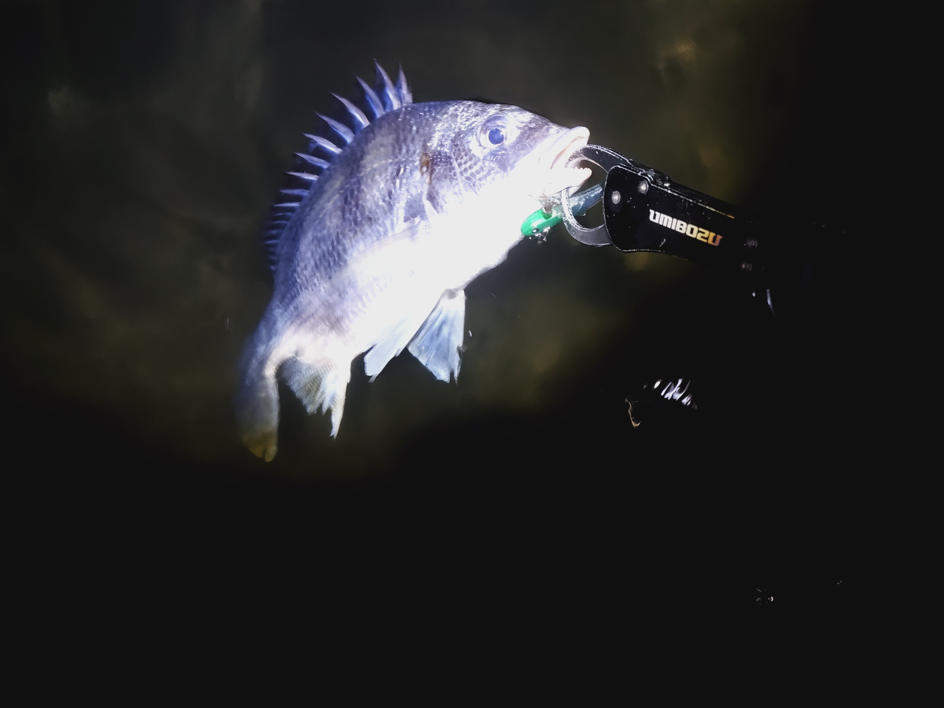 ディモル70のフロントアイ仕様でシーバスを狙っていきます。引き抵抗は軽く、シンペンちっくになりますが、微波動バイブレーションでスレた魚にも違和感を与えにくくなります!
