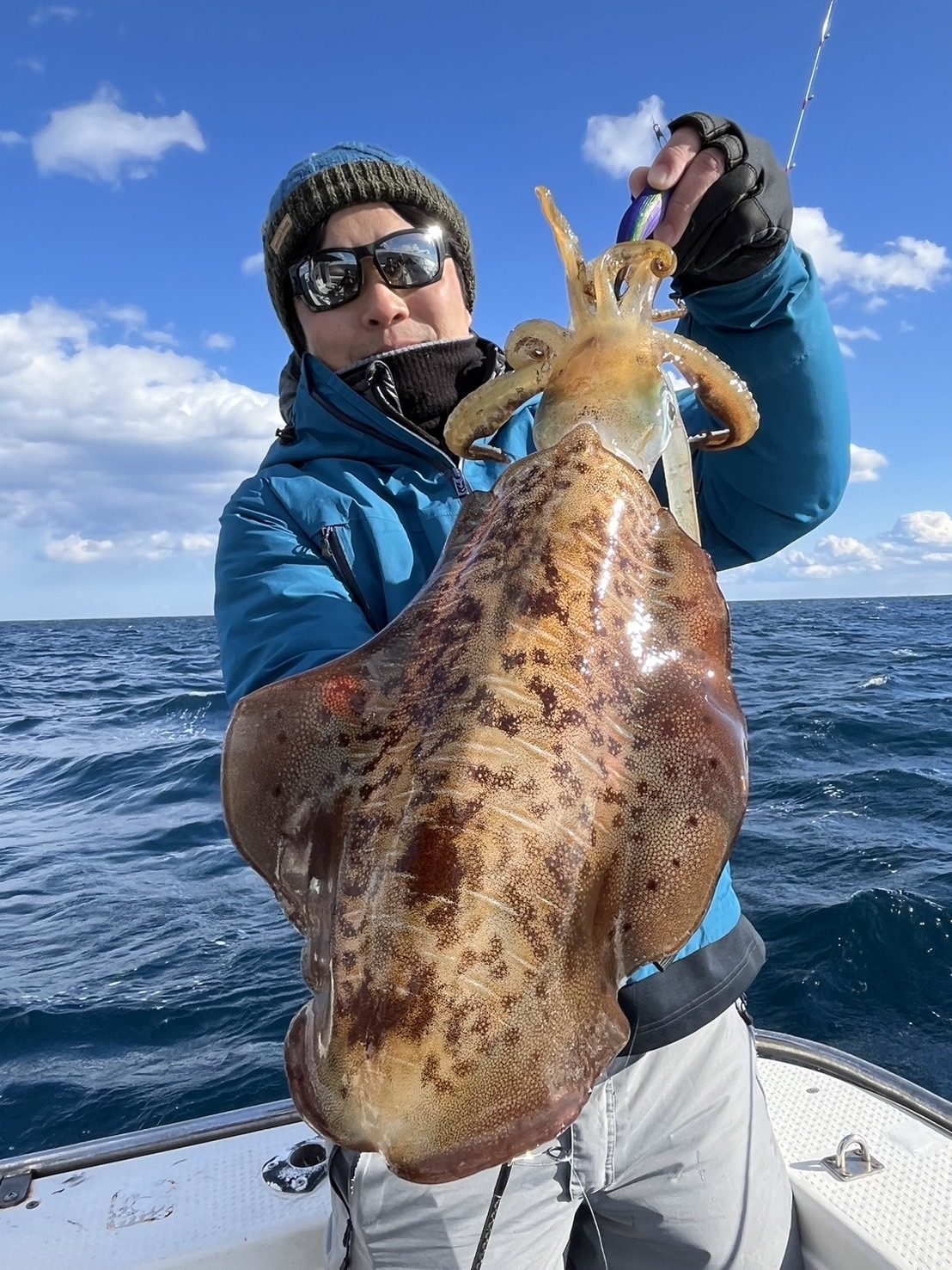 明確なあたりもなく、しゃくりの途中で重くなりぜんぜん引かないアオリイカでしたが、それでも1.2kgありました
