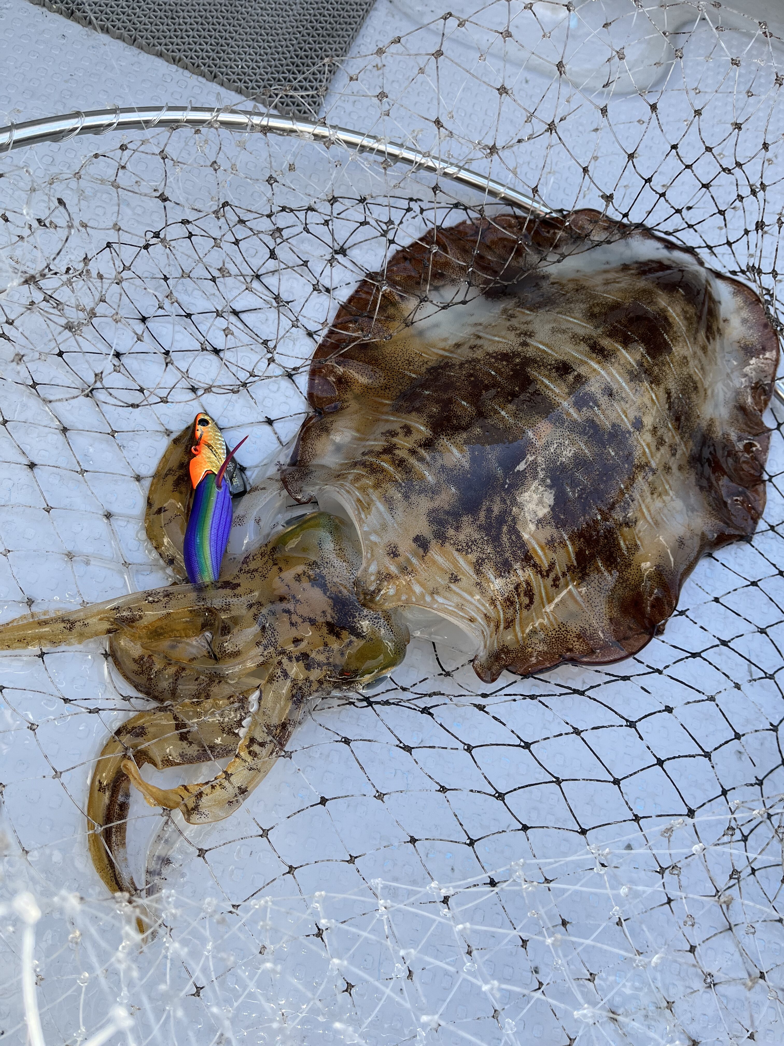 掛けた瞬間かなりの重量感があり慎重にやりとりして無事ランディング🦑