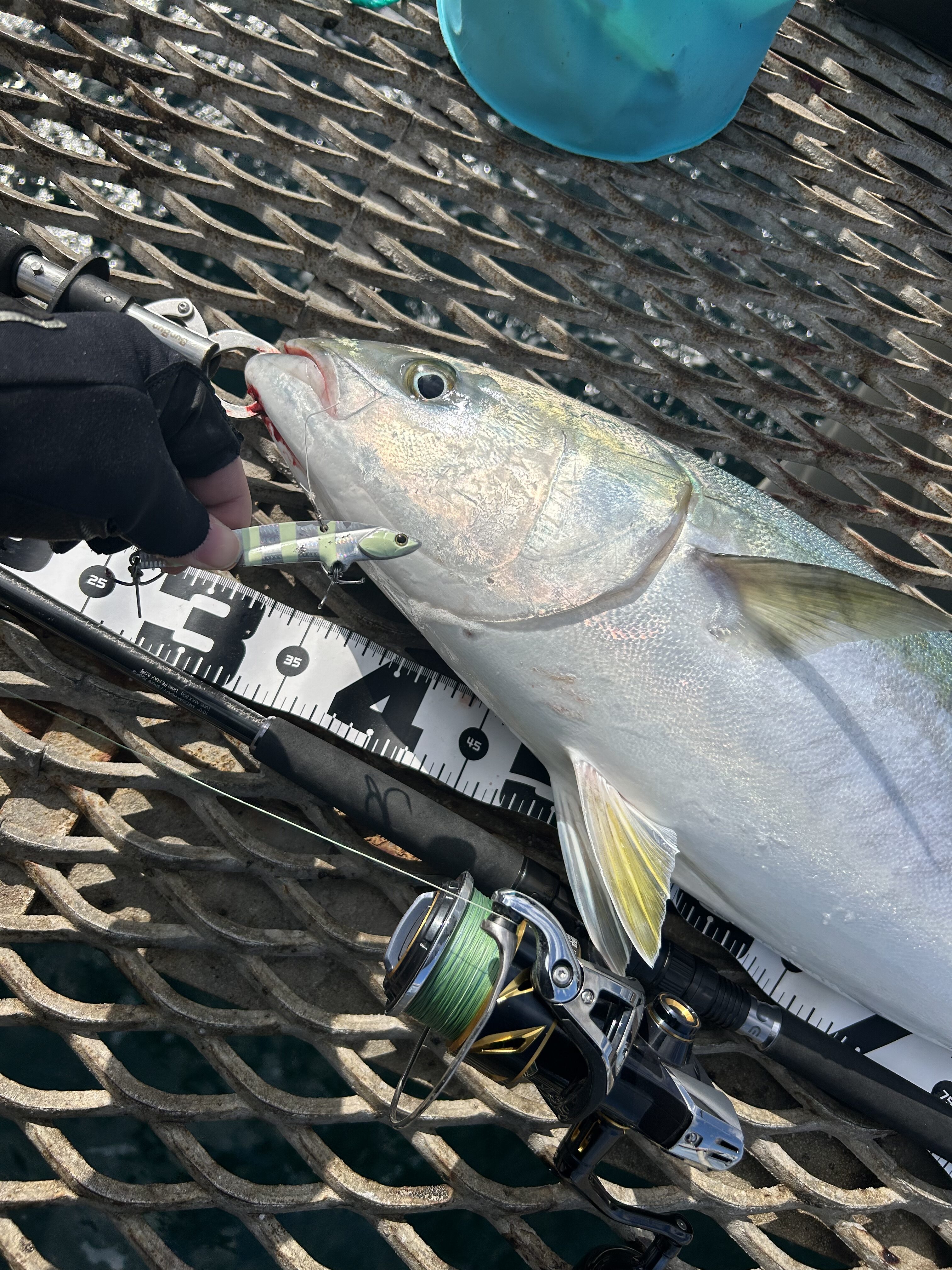 見えてきた魚影は余裕で80cmは超えているブリ‼️サイズを測るとなんと90cm‼️
