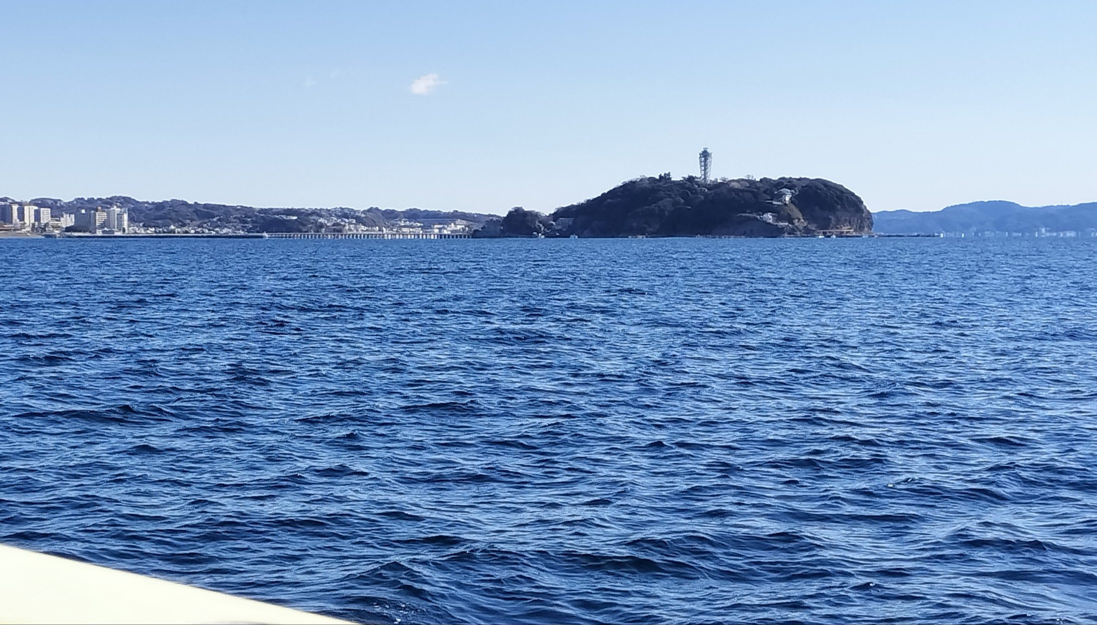 江ノ島が近傍に臨める様なポイントでスタートすると、暫くして自分のロッドが運良く弧を描いてキロアップのモンゴウイカをゲット!!