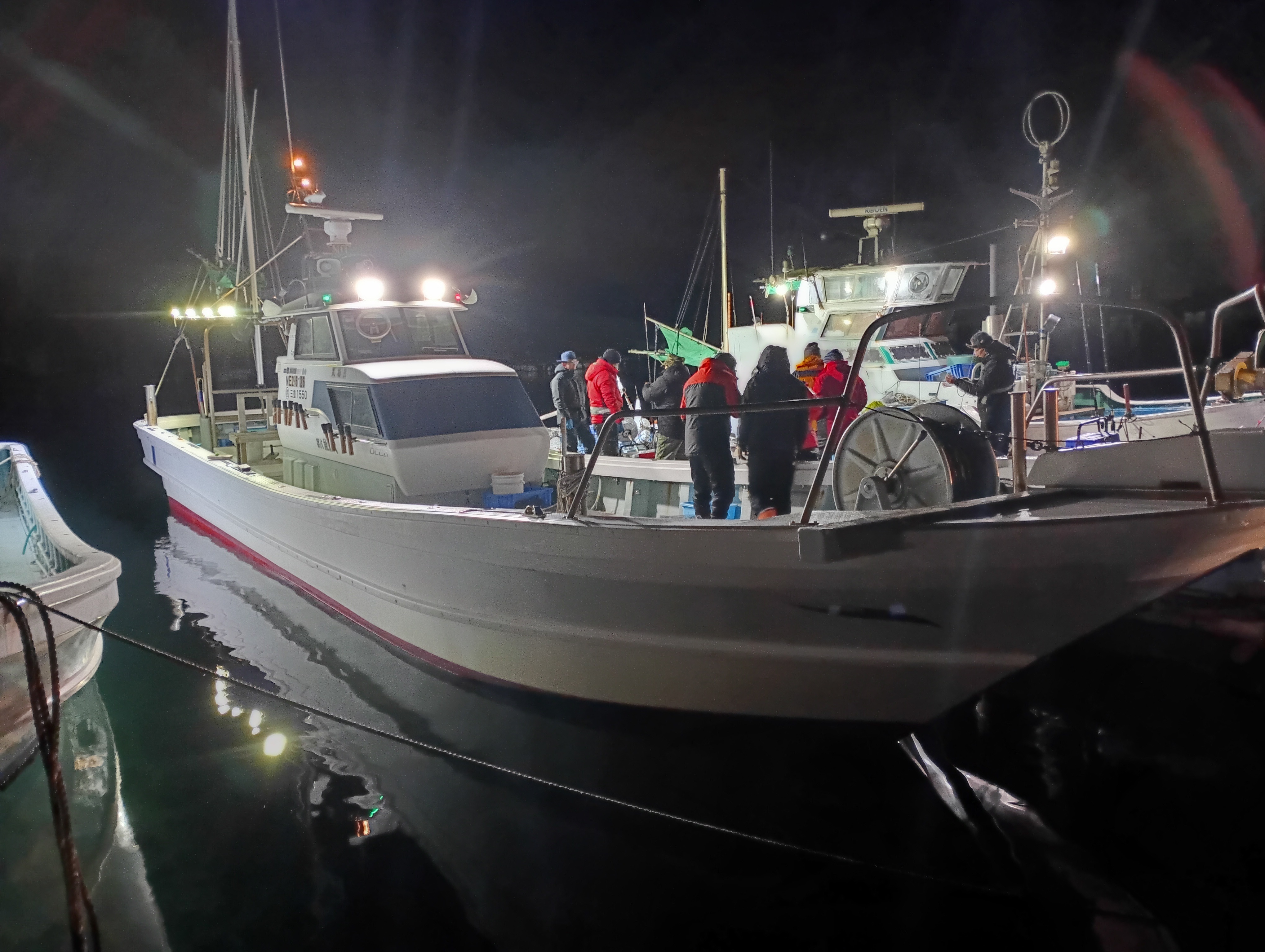 気温は1℃。かなり冷えます。船で走ると寒いですが餌のイワシを切ったり準備をしていると気持ちが高ぶります♪