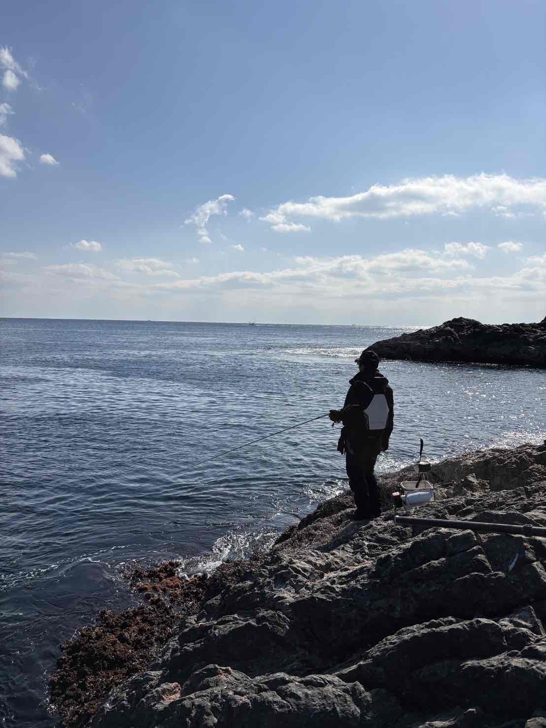 早速コマセをセットして仕掛け 釣り座を決めて釣り開始 沖向きが良いと聞いていましたので沖向きに仕掛けを投入 コマセを打っていくも反応無しサシエも残ったまま 風が巻き込んでくるので向かい風となり釣りにくいので船着きに移動 ゆっくり仕掛けをなじませていくとヒット よく引いて上がってきたのはサンノジ サンノジのタナより浅くして流していくもエサ取りも無く苦戦 我慢できずタナを深めにするとサンノジの連続ヒット グレのアタリ方ではなくウキが瞬時に消えるアタリ方 サンノジ ヒブダイ オジサンなど外道ばかり 遠投して流していくも同じ結果 夕まずめに再度沖向きを攻めるもアタリがあるも取り込みまでができない外道ばかり アタリは頻繁にあるも狙っている口太グレは無く納竿となりました。奇数まわりの渡船では釣果がかなり出ている感じです。水温の上下が大きい日だったようで安定すれば数も型もでているようです。まだまだシーズン的にいける感じです。