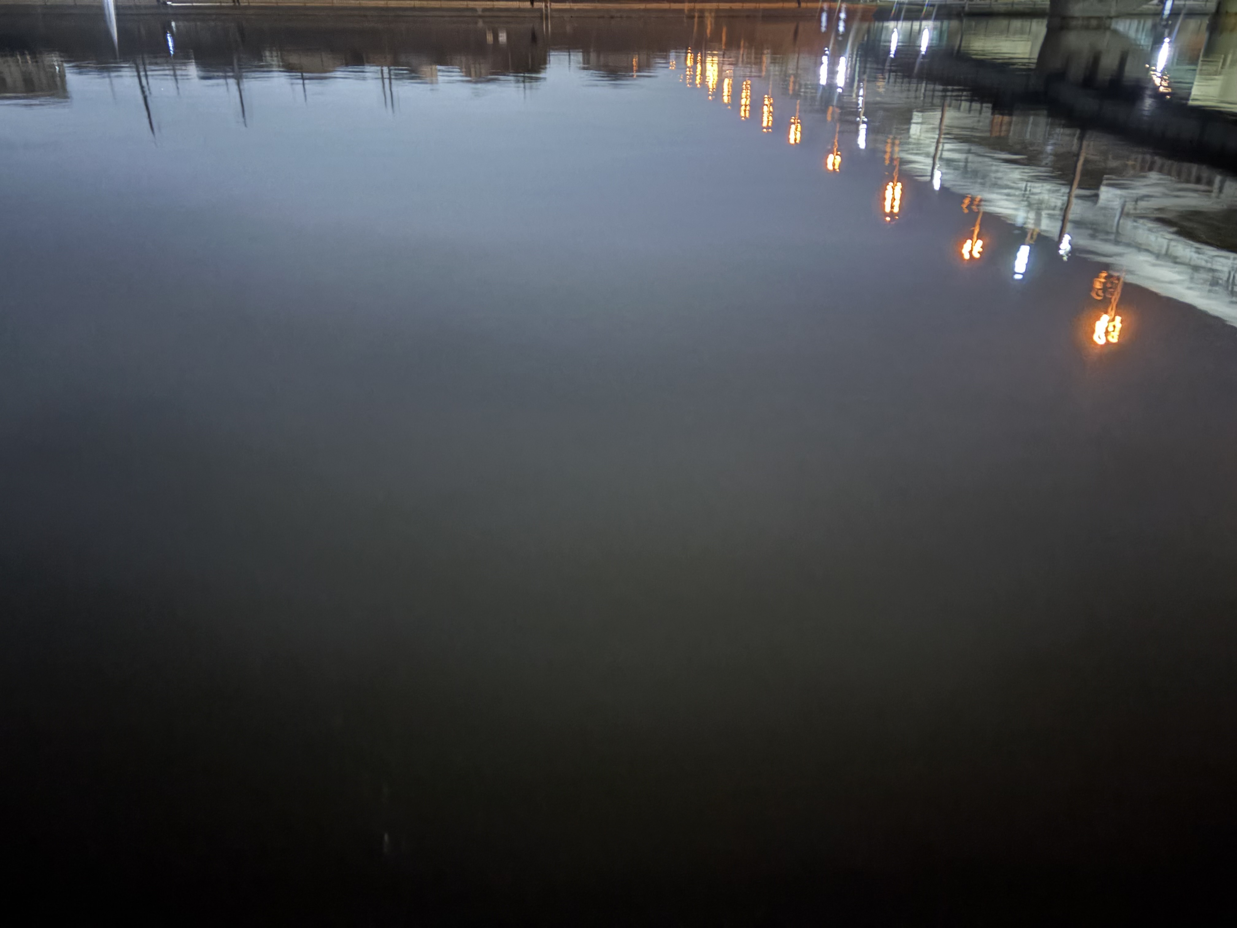 日没を迎え、まだ上げ潮だが少しずつ流れが緩んできた