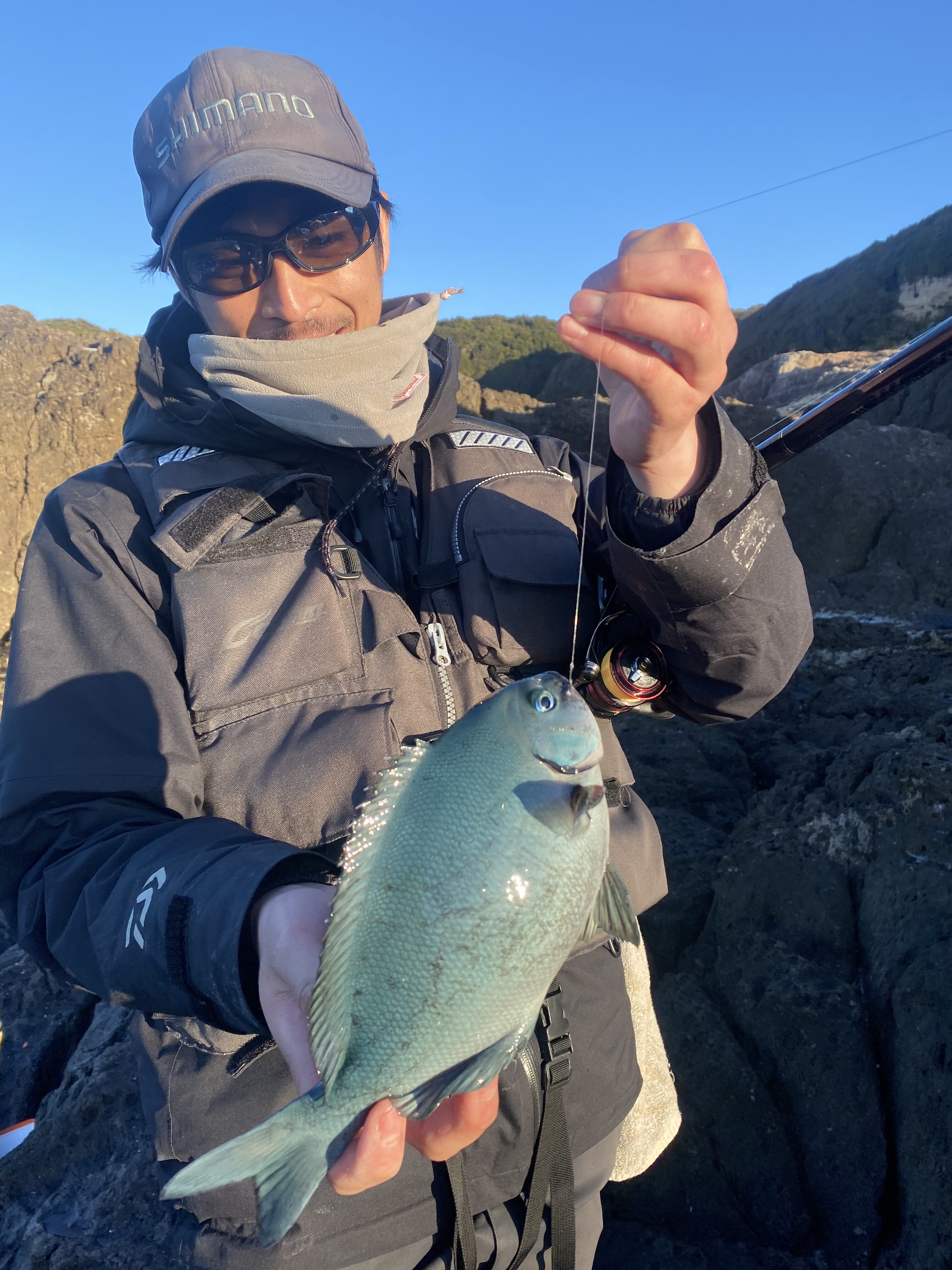 スタッフ 藤原と和歌山の地磯で寒グレを狙いました。2人ともグレ釣りの経験はほとんどなく手探りの状態。動画をみたりして予習はバッチリ👌