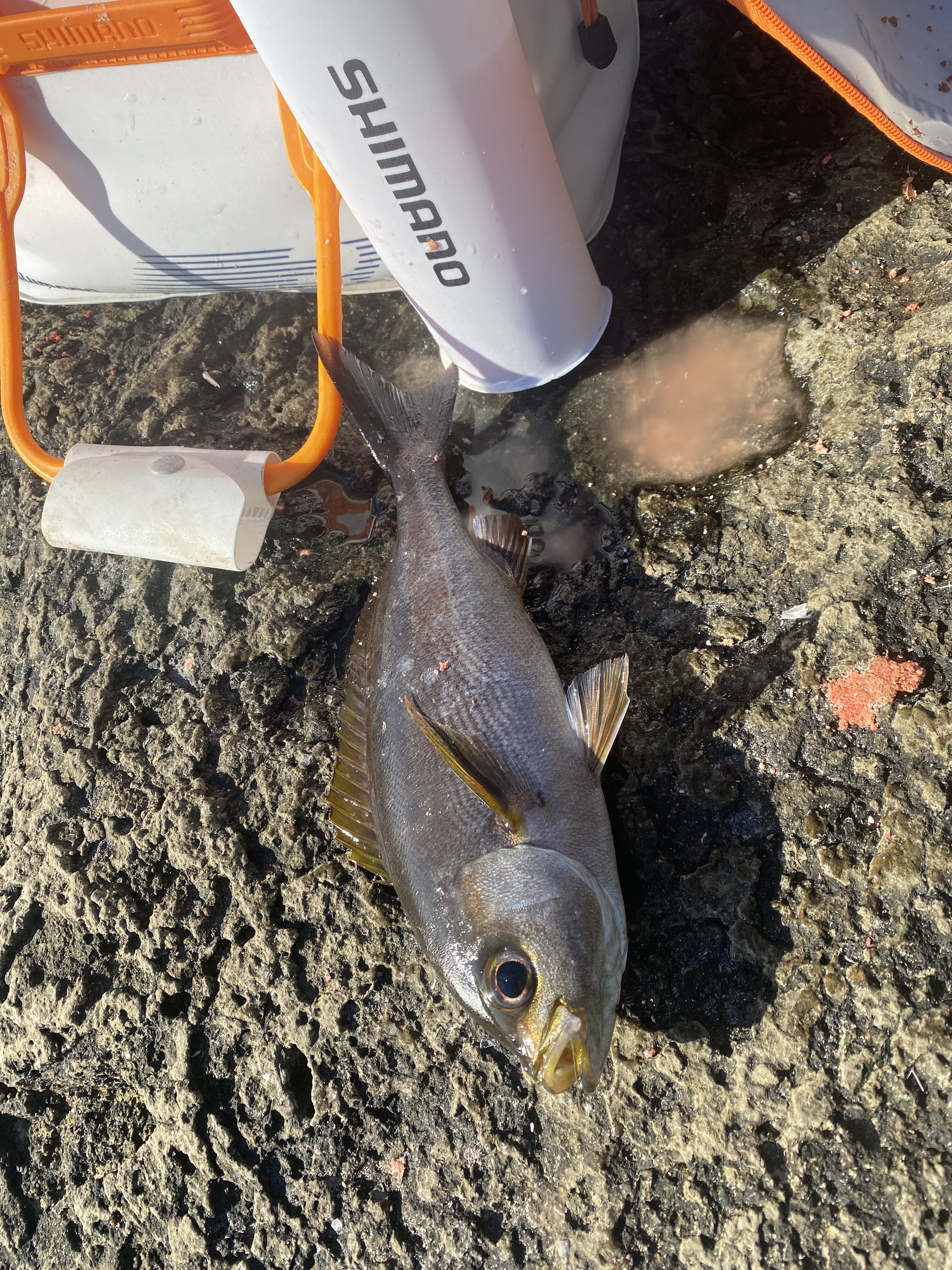 2026.02.09 印刷する 和歌山 地磯グレ 魚種 グレ/メジナ 数 2人で口太グレ40UPを含め5匹 イサキ4匹 釣り方 ☆フカセ釣り(グレ・メジナ) 場所 和歌山県 スタッフ 今井亮太郎 店舗 岐阜店 釣行日 2026.02.03 コメント スタッフ 藤原と和歌山の地磯で寒グレを狙いました。2人ともグレ釣りの経験はほとんどなく手探りの状態。動画をみたりして予習はバッチリ👌 朝一まずは藤原がいいサイズのイサキを釣り上げました! シマノ コアゼロピットDVCタイプD 00(オレンジ)こちらのウキを全誘導で送ってたみたいです。まきエサと同調することがなにより大事なんだとか。チヌのフカセもそうですがグレのほうが同調されることが大事なようですね。 さらにコッパサイズ💁 なんと40UPも登場‼️40UPになると一気に風格がでますね!!引きも相当引いてましたよ! 私は掛けるも強烈なツッコミに耐えられず、ラインブレイクが続いてしまいます、、、、、、 半誘導仕掛けを沈ませて、僅かな当たりをキャッチ!!コッパサイズですが本当に嬉しかった😊 イサキも追加しちゃいましたよ!! 私は半誘導でこちらのウキを使用しました。途中からガン玉を打って沈ませた方が反応が良かったように思えます。 初めたばかりでパターンなどよくわかりませんが、沖に払い出す潮にウキを沈ませ流す。2人ともこのパターンで釣れました!! 配合エサ オキアミM3 キロ+グレベスト+V9 針はこちらを使用しました😊 使用した釣具 飛竜チヌ0.6号53 ラリッサ 2500