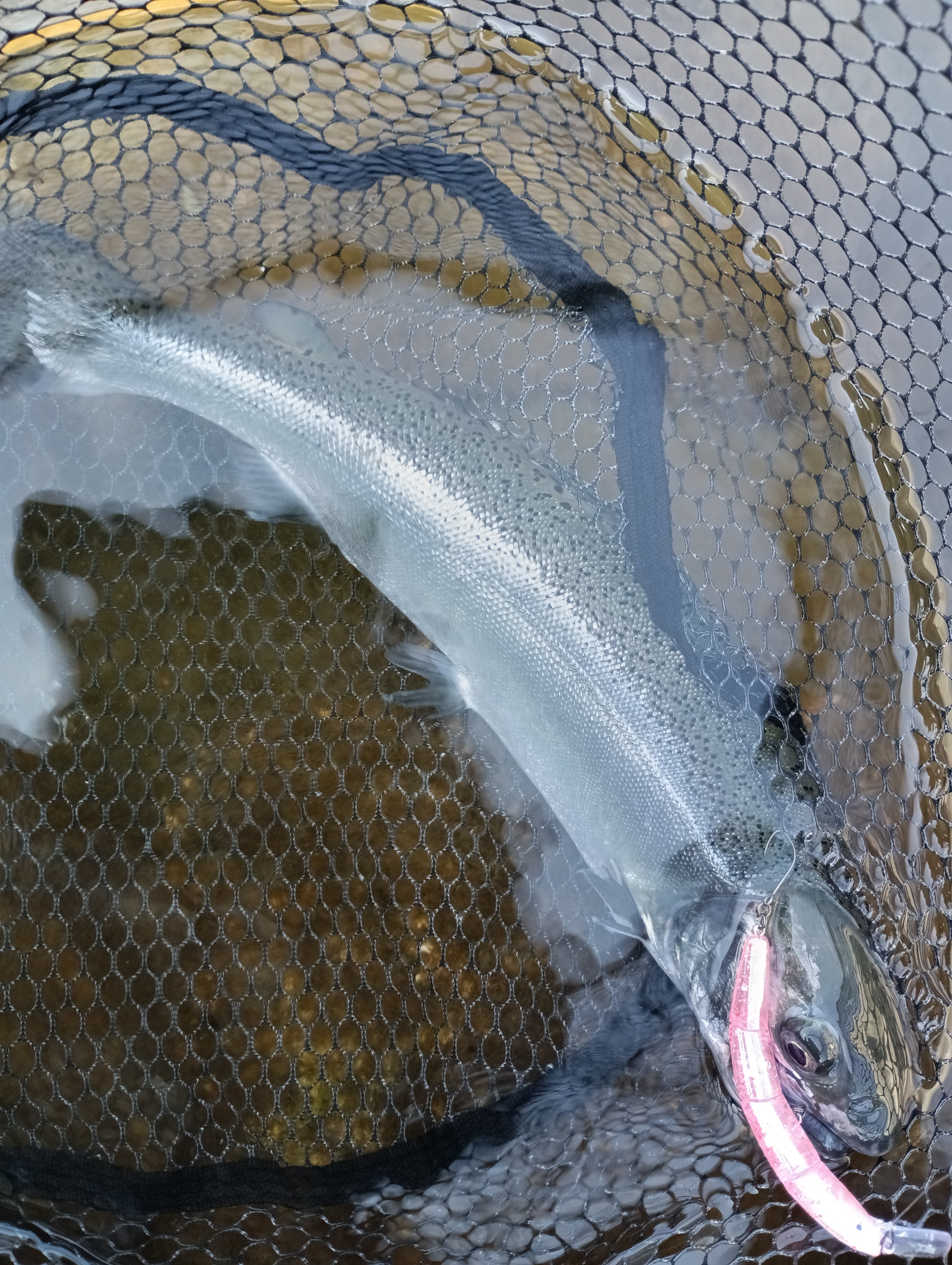 頻繁にルアーチェンジし、スレさせないようにしていく事でポツポツとサクラマス釣っていく。今回もOSPのドゥルガ73SPの反応が良く、連発までいかないものの、コンスタントに釣れました。