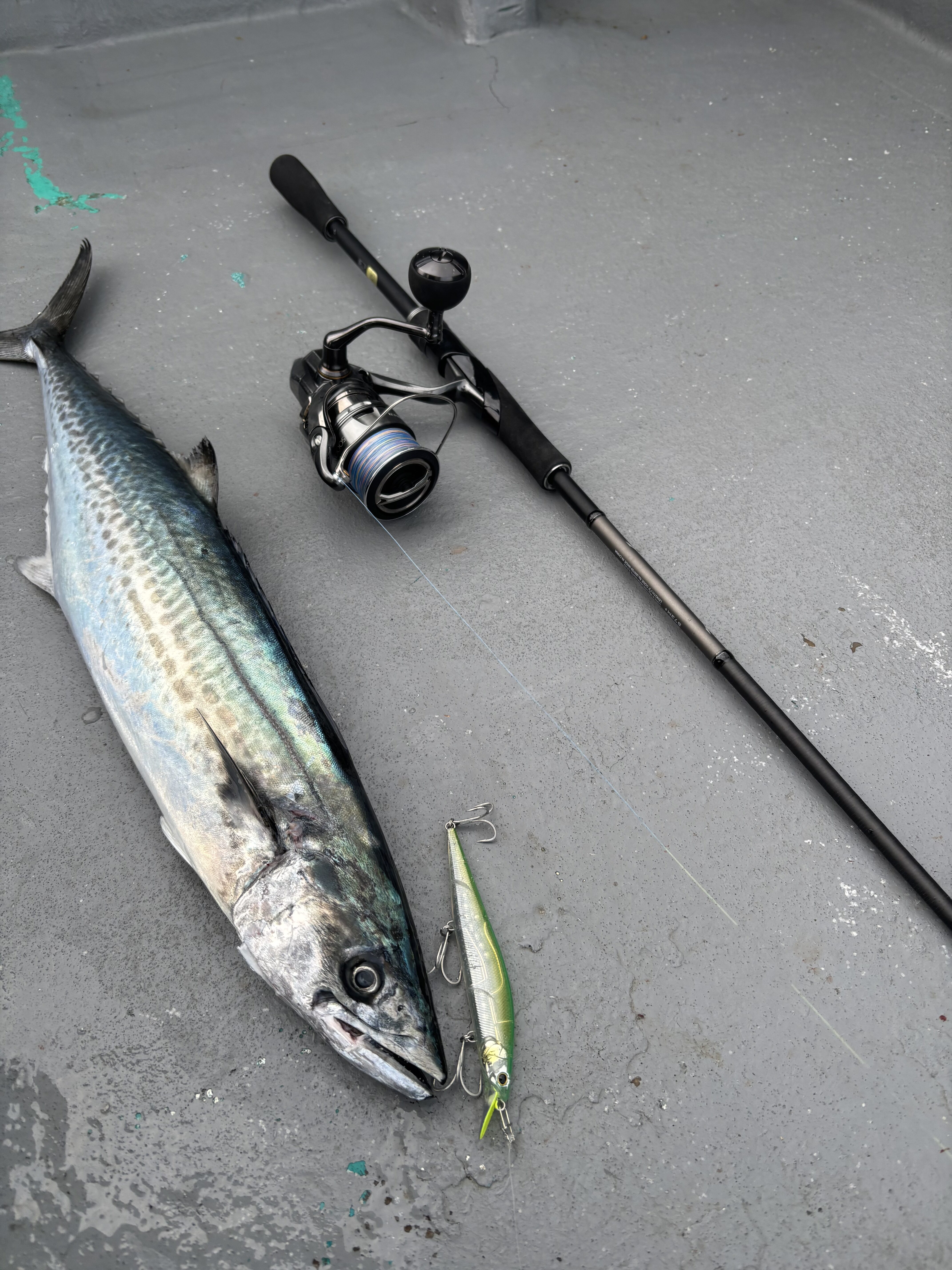 2026年の釣り初めとして、和歌山県御坊市塩屋から出船する谷野丸にてサワラジャーキングへ行ってきました。今回は午後便を利用し、11時30分集合、12時過ぎに出港。ポイントまでは2〜3分と近く、塩屋湾内にはサワラ・サゴシの群れが回遊している状況でした。一流し目から反応があり、2投目でサゴシをキャッチ。幸先の良いスタートとなりましたが、群れが小さく移動も早いため、その後は拾い釣りの展開となりました。