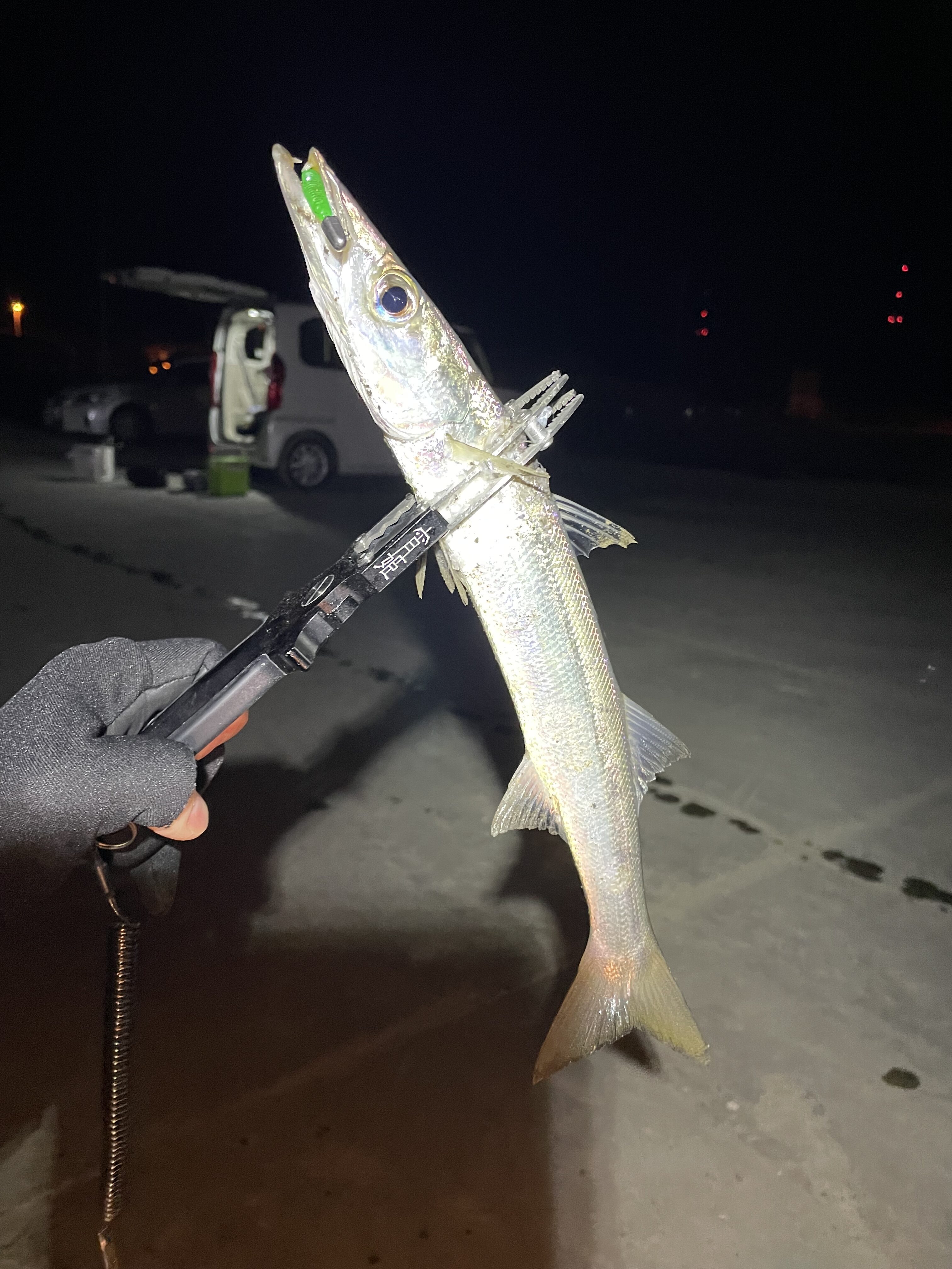今日は釣りをしてる人が少ないのでカマスが始まるタイミングが分からず完全に暗くなるまで待ちました
