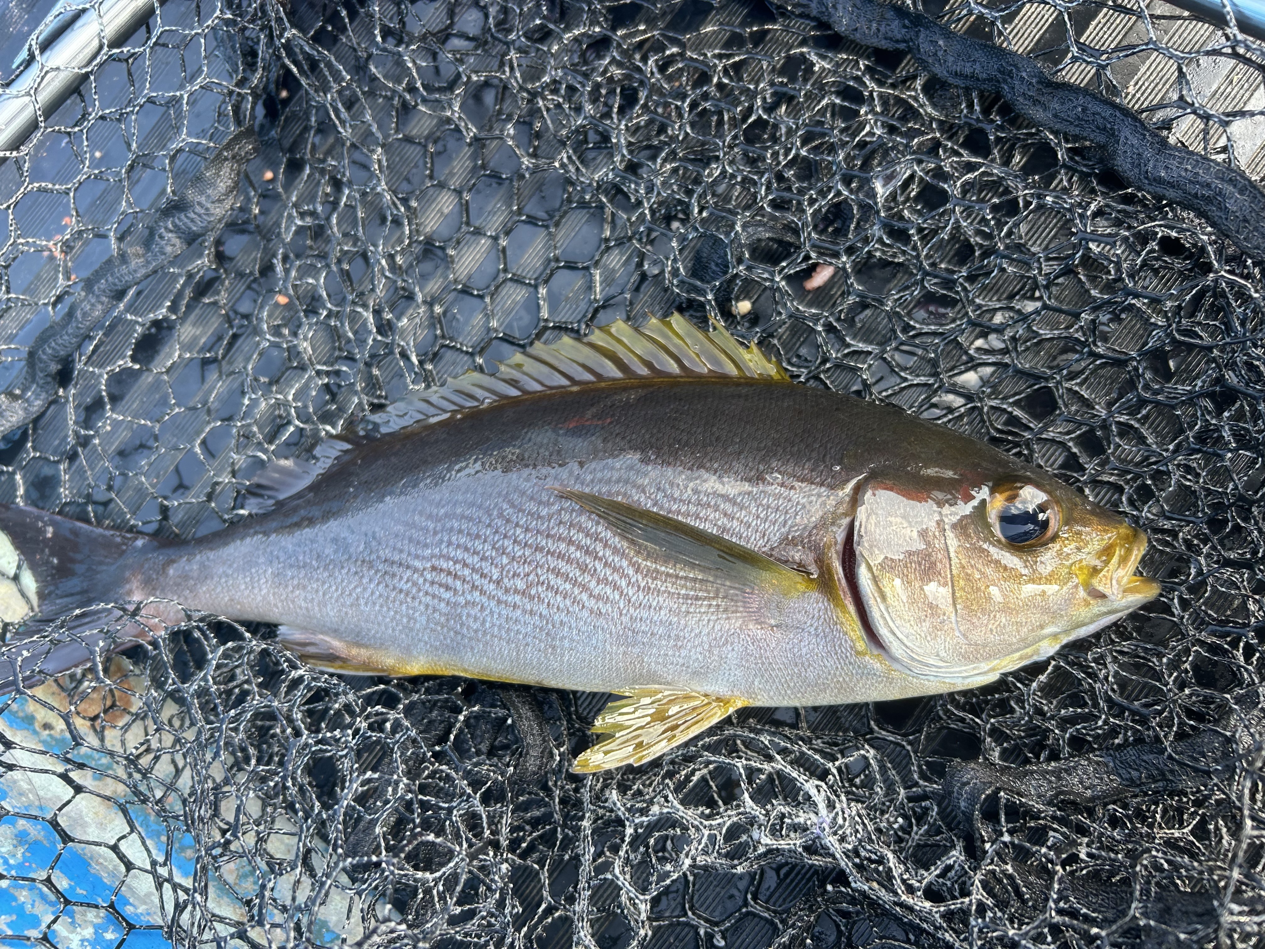 その後もイサキはポツポツ釣れるもののヤイトは姿を見せることはなく、終了の時間が迫ってきます。最後の最後に勢いよくラインを弾き出したのは40cmオーバーの良型のグレで、この1匹で本日は終了となりました。