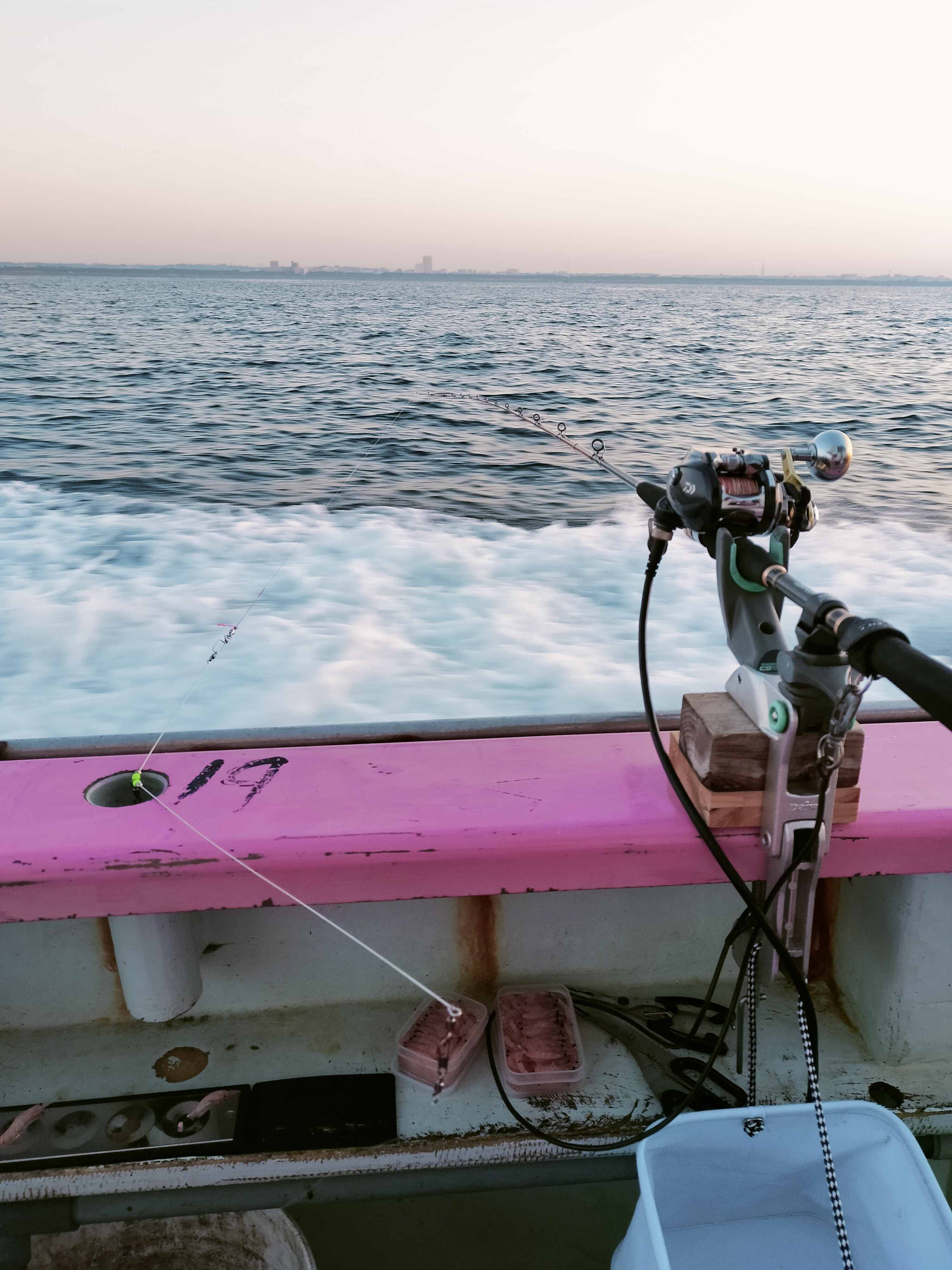 左の大トモから3つと左のミヨシが1つ席を取って潮の流れと釣果を見て入れ替わる戦略をとりました!
