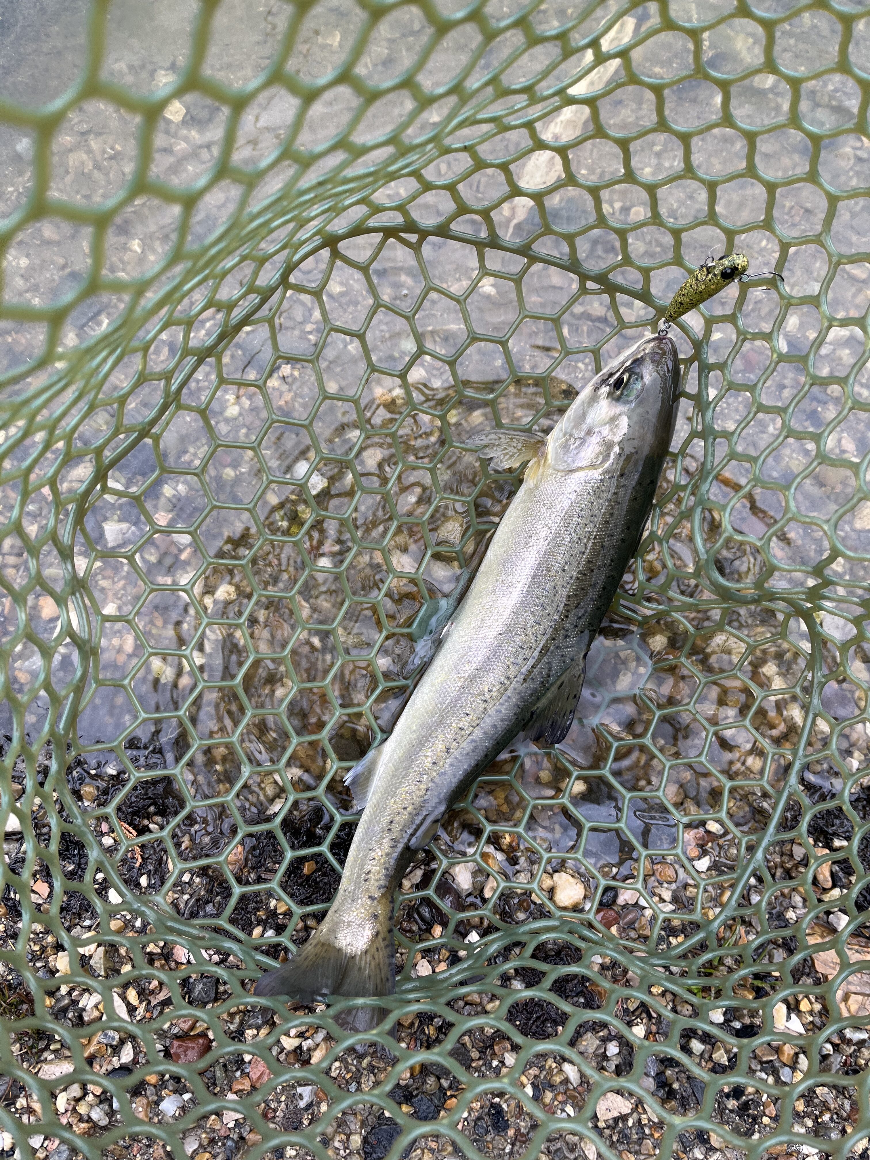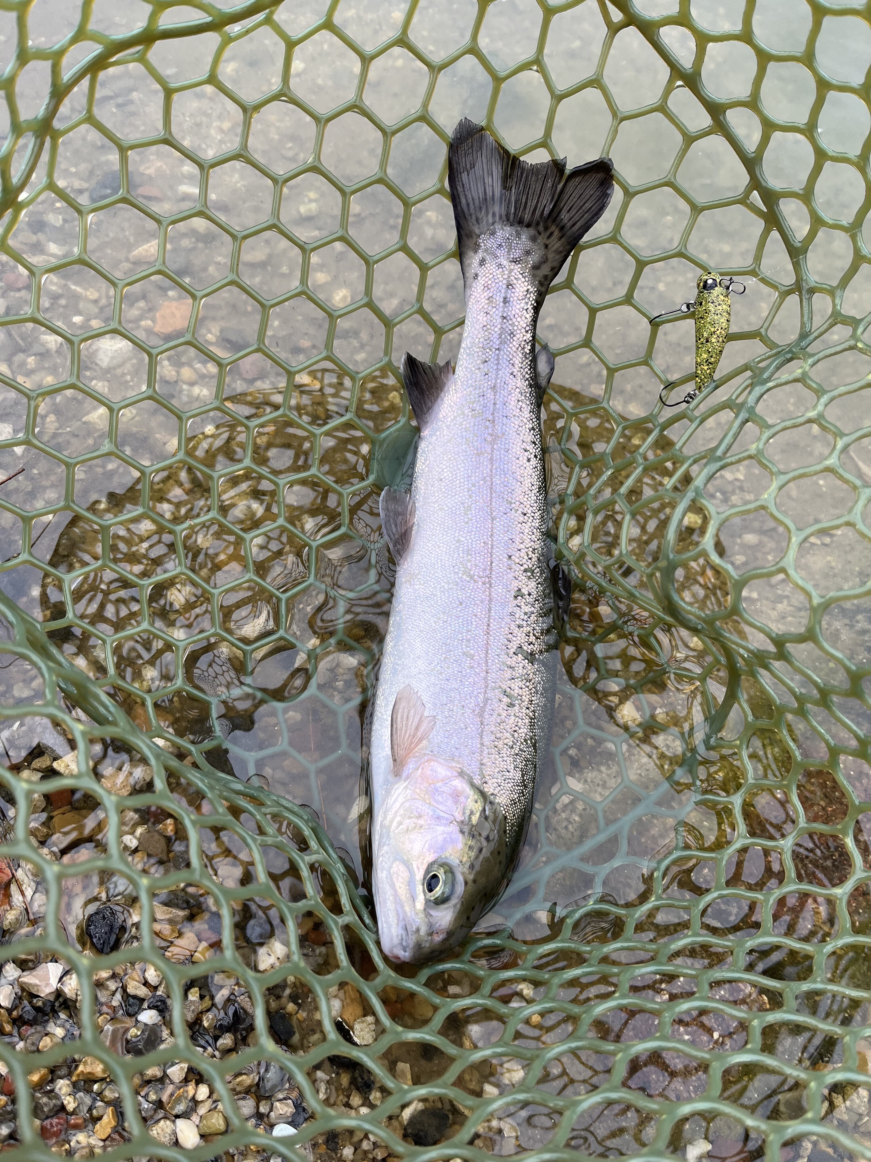 幸先よくヒットしたのはレギュラーサイズのニジマス🌈