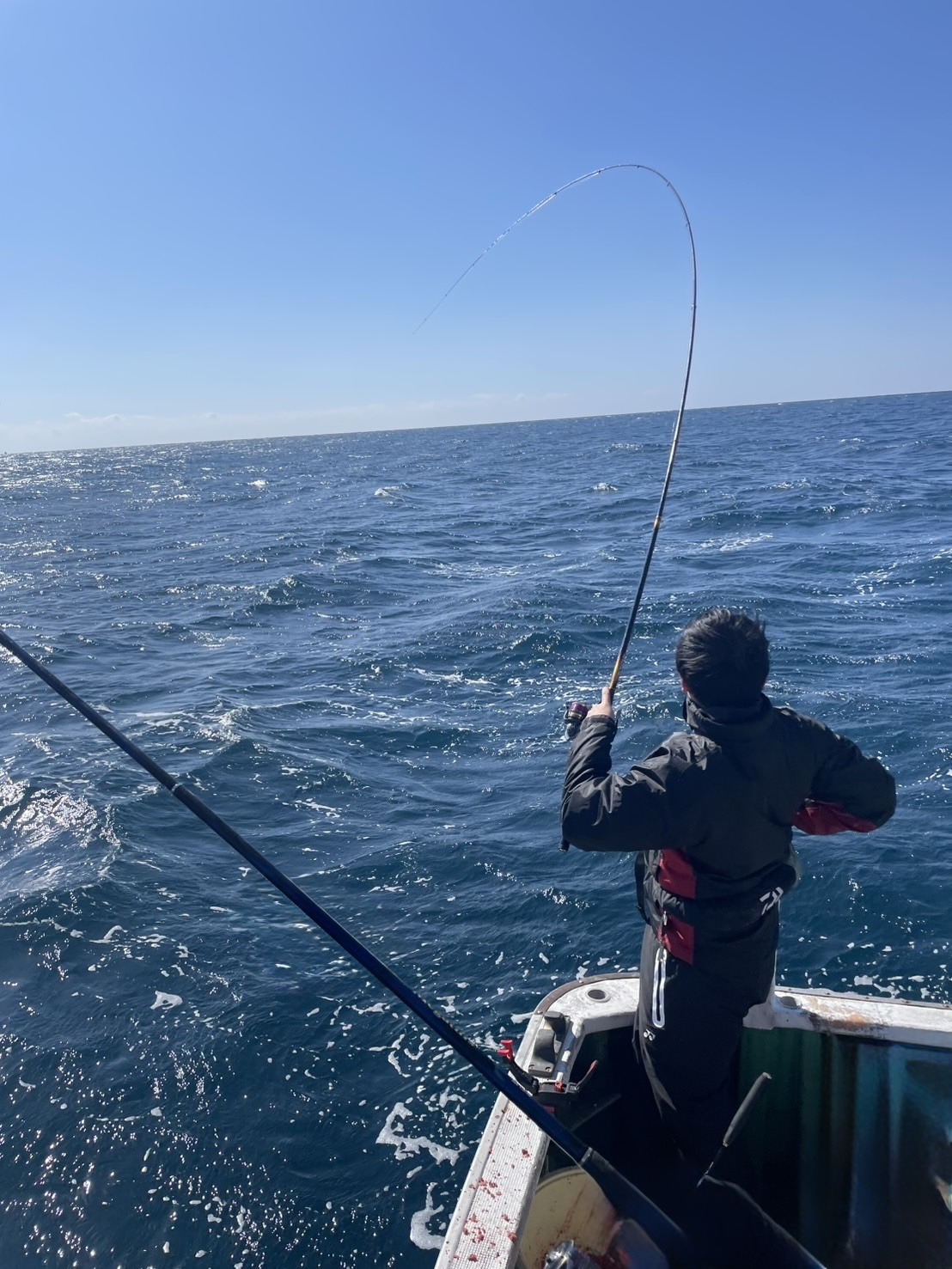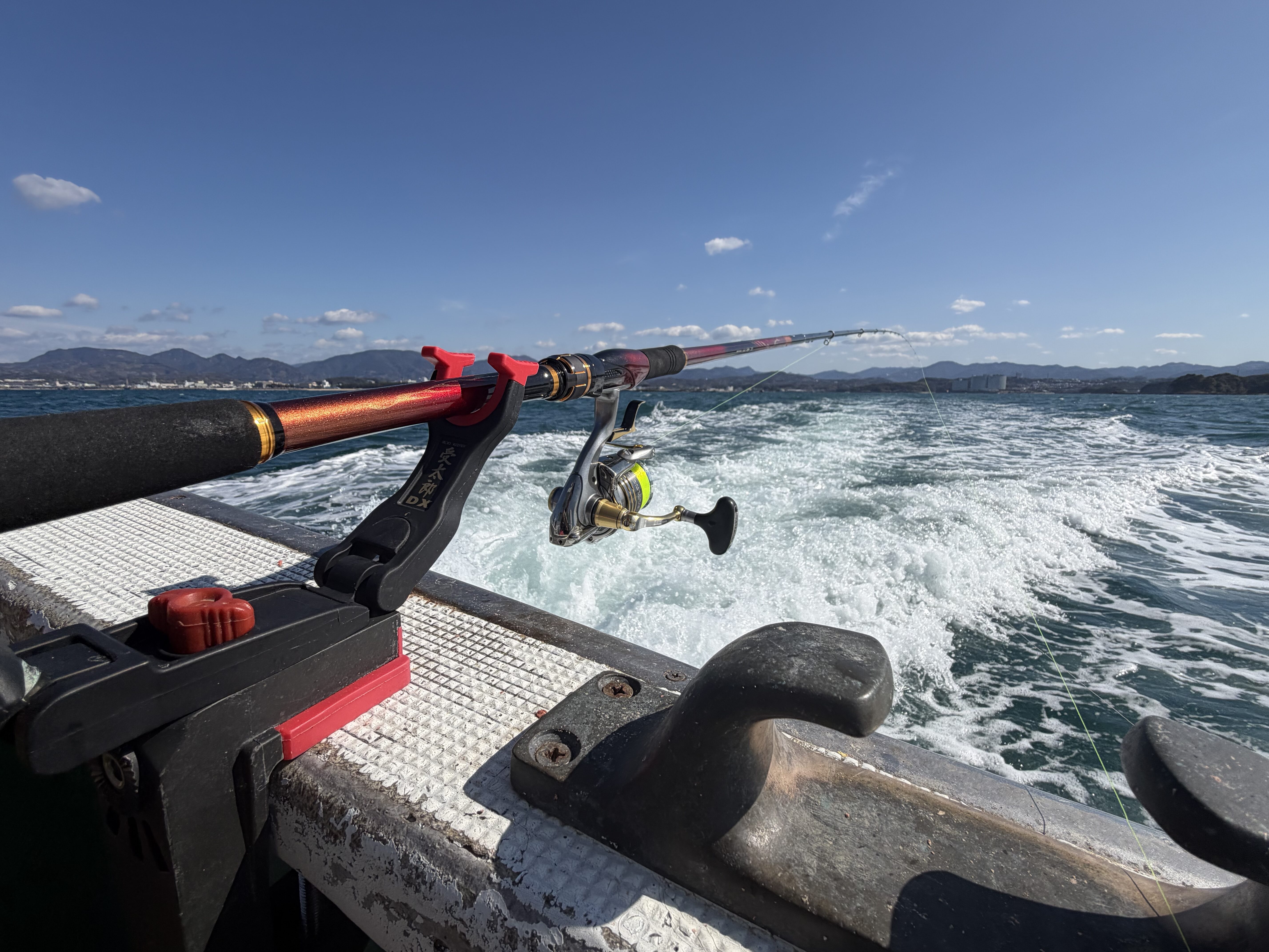 和歌山・田辺の大瀬丸さんにお世話になり、船から磯釣りスタイルのグレウキフカセに挑戦してきました。午後便で10時頃出船、ポイントは白浜沖の沈み瀬“シャクシ”。アンカリング後に実釣開始。北西風の中、下り潮が沈み瀬へ素直に流れ、仕掛けは入れやすい好条件。しかし開始から約2時間は反応なく苦戦…。
