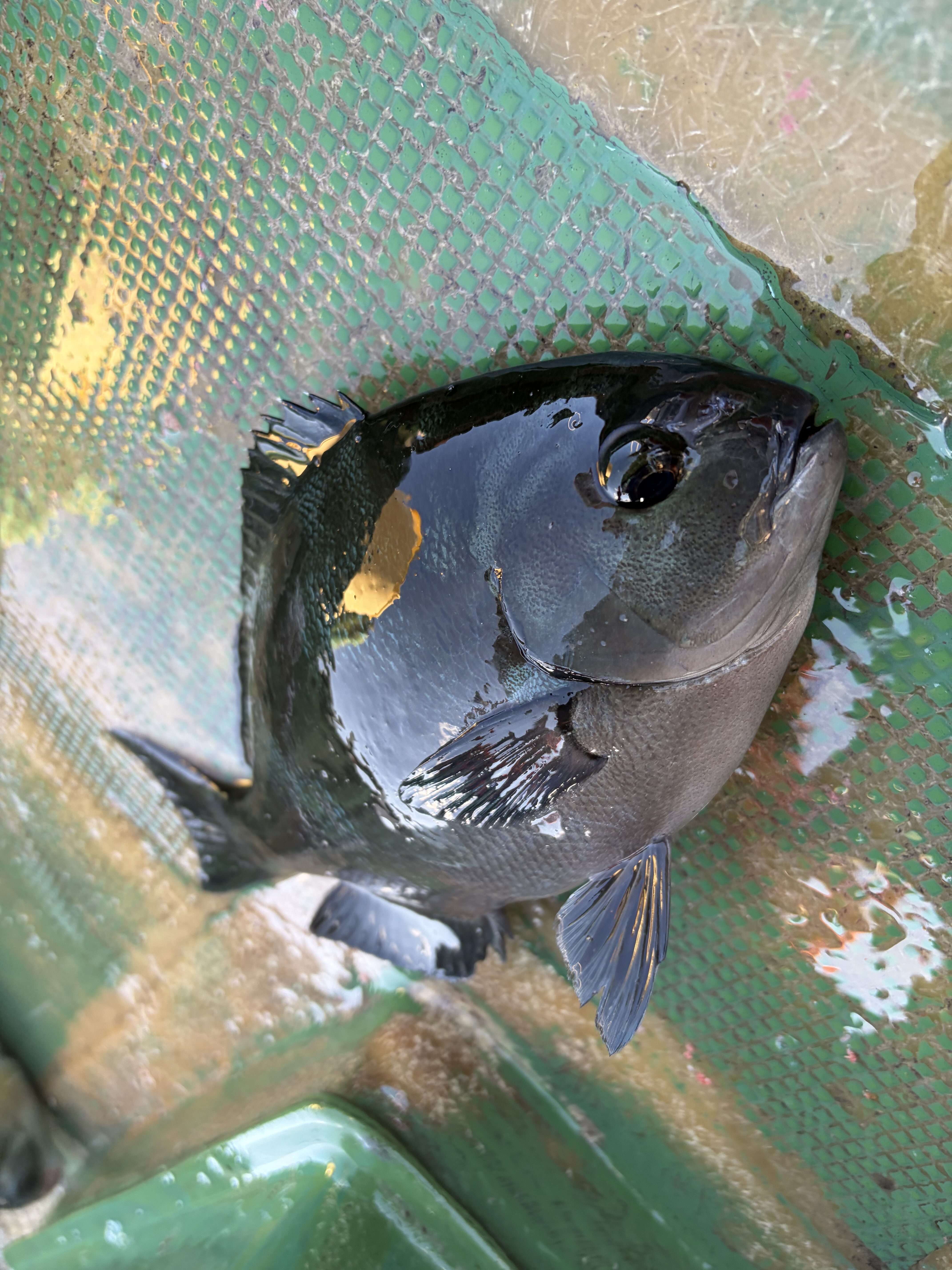 それでも沖へ沖へと丁寧に送り込み、ウキが見えない距離まで流したタイミングでラインが走る強烈なアタリ!上がってきたのは30cm級の美しい尾長グレ。その後は再現性に欠け単発でしたが、コマセワークを継続し納竿の16時まで粘り切りました。