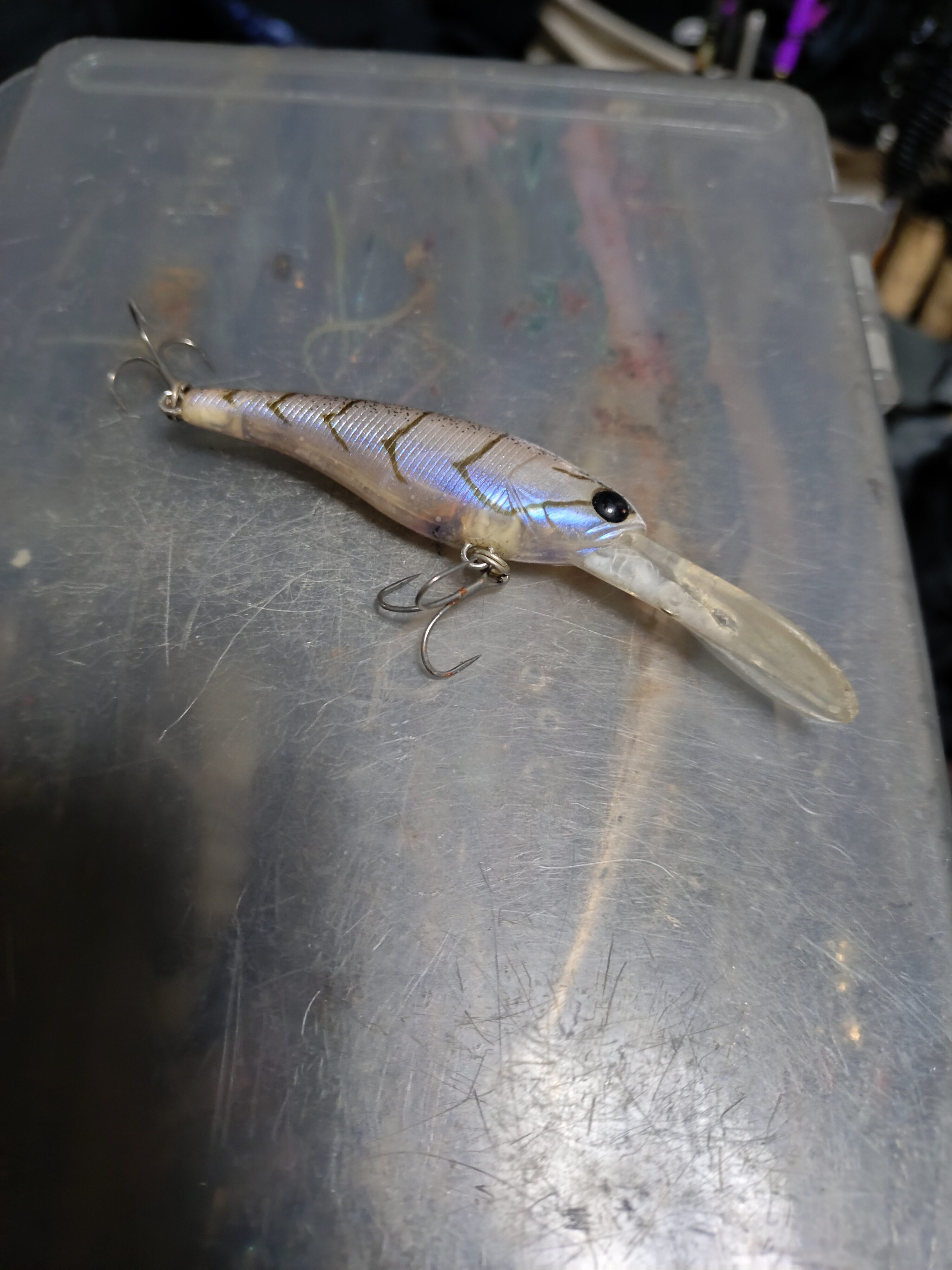そして、ミドストや3インチノーシンカーワームでチェックするもアピール力が少ないと感じ、ソウルシャッド58SPを大岩周りに通したその時……黒い弾丸がソウルシャッドを猛スピードで追従して……喰わせる引きしろが短過ぎた為、後一歩でバイトに至らず(T_T)