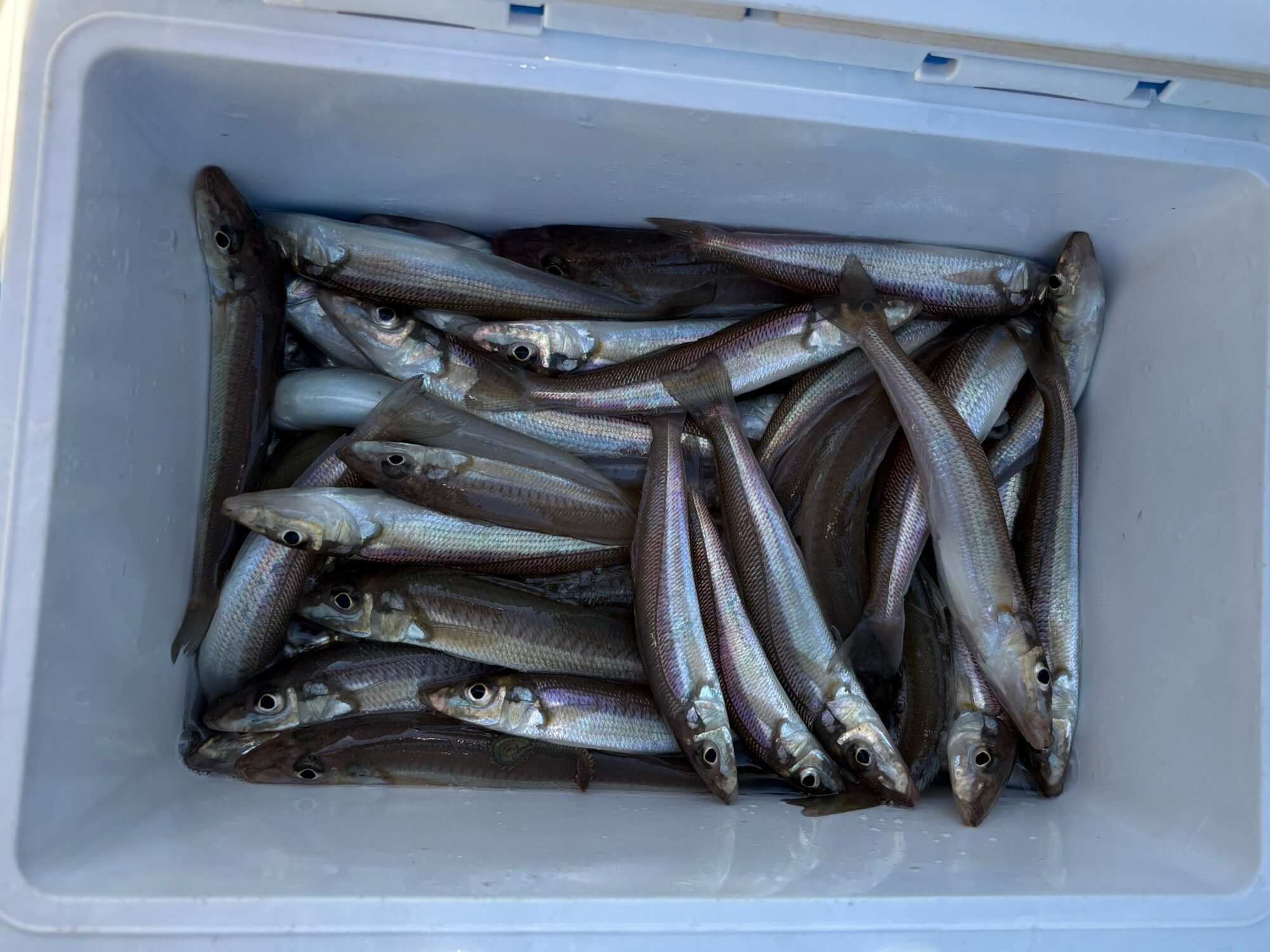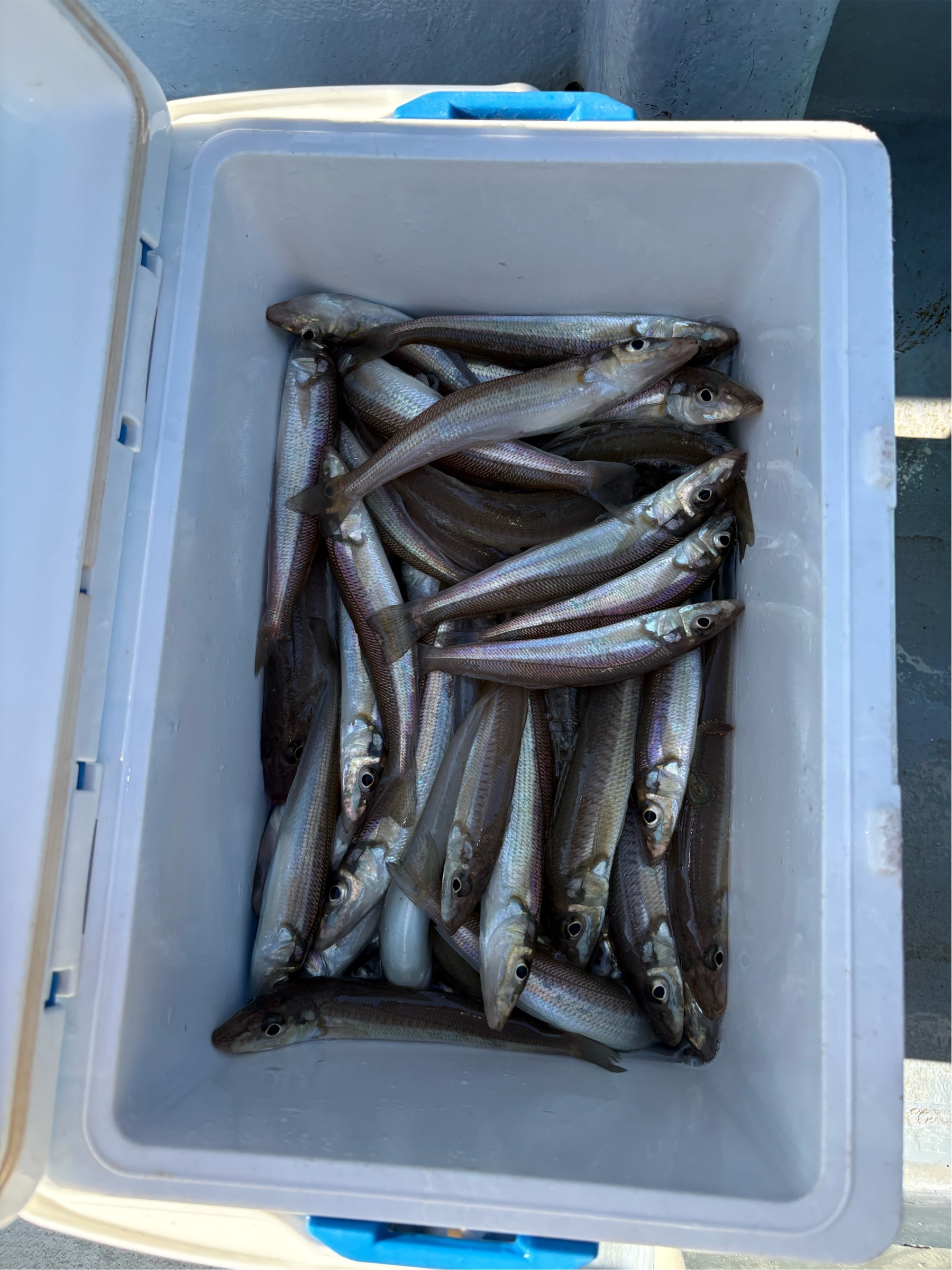 ギリギリいけるかどうかというところでしたが、なんとか束乗せられて104匹で沖上がりを迎えました。(2隻の高低 3〜124匹)