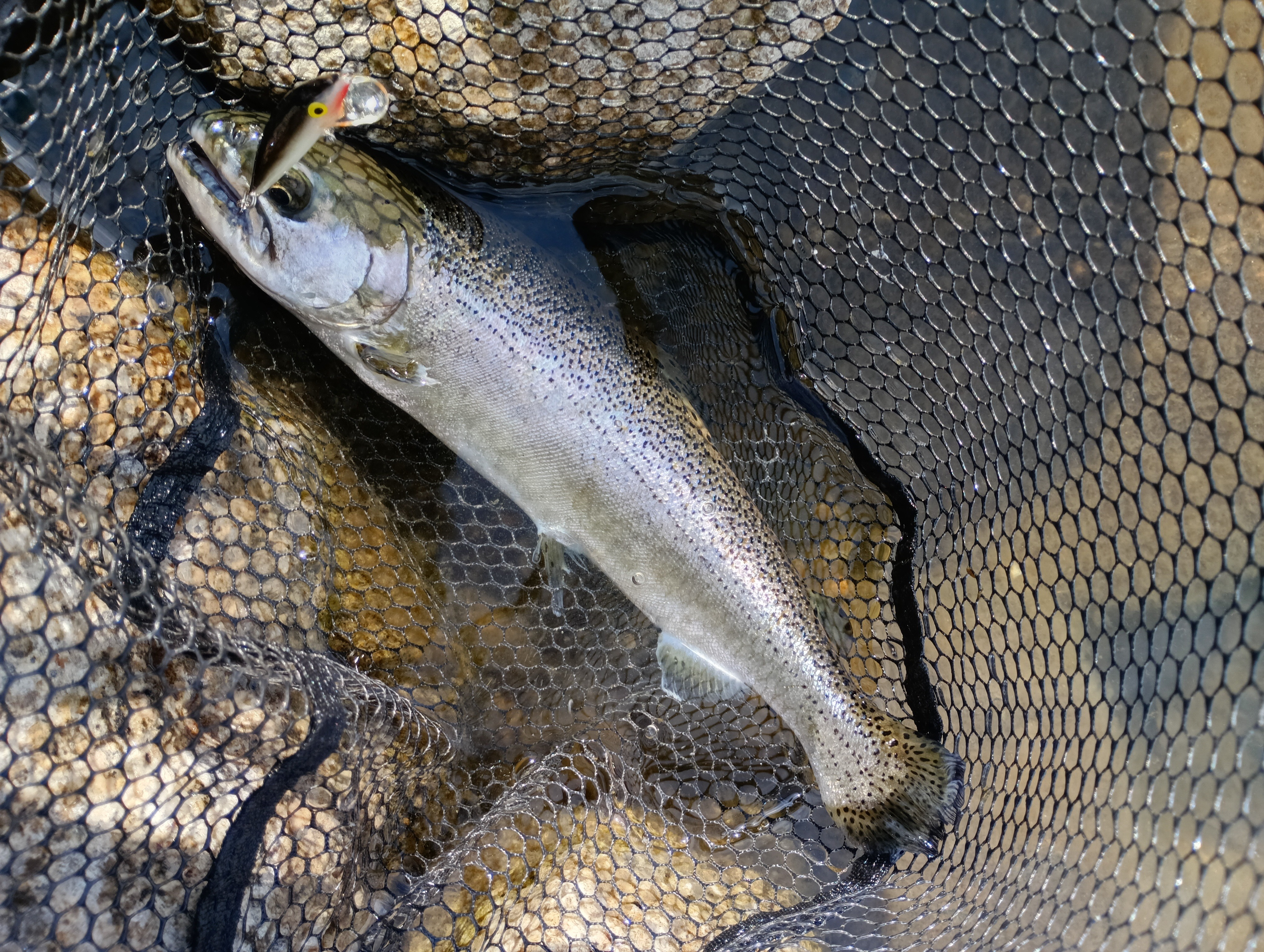 とにかく頻繁にルアーチェンジし、最初の3、4投で反応なければすぐにルアーチェンジなど、スレさせないようにしていく事でポツポツとニジマス・サクラマスを追加。