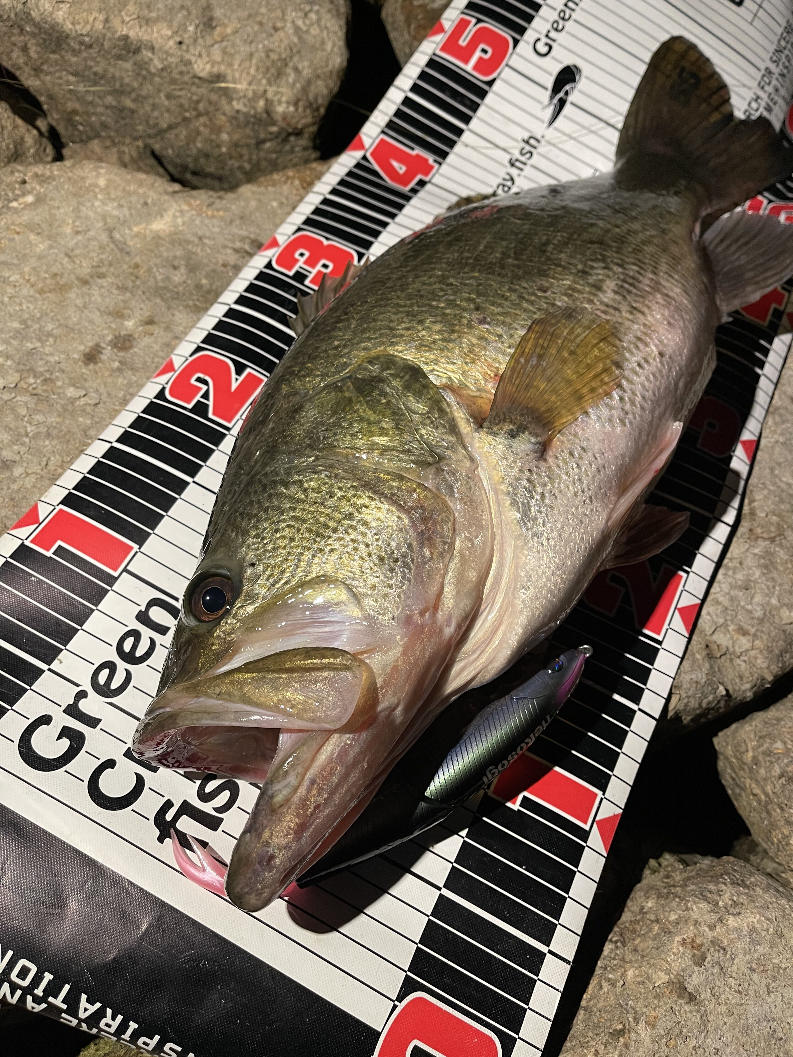 すぐフッキングし釣れたのは56cm3200gのバスでした!!