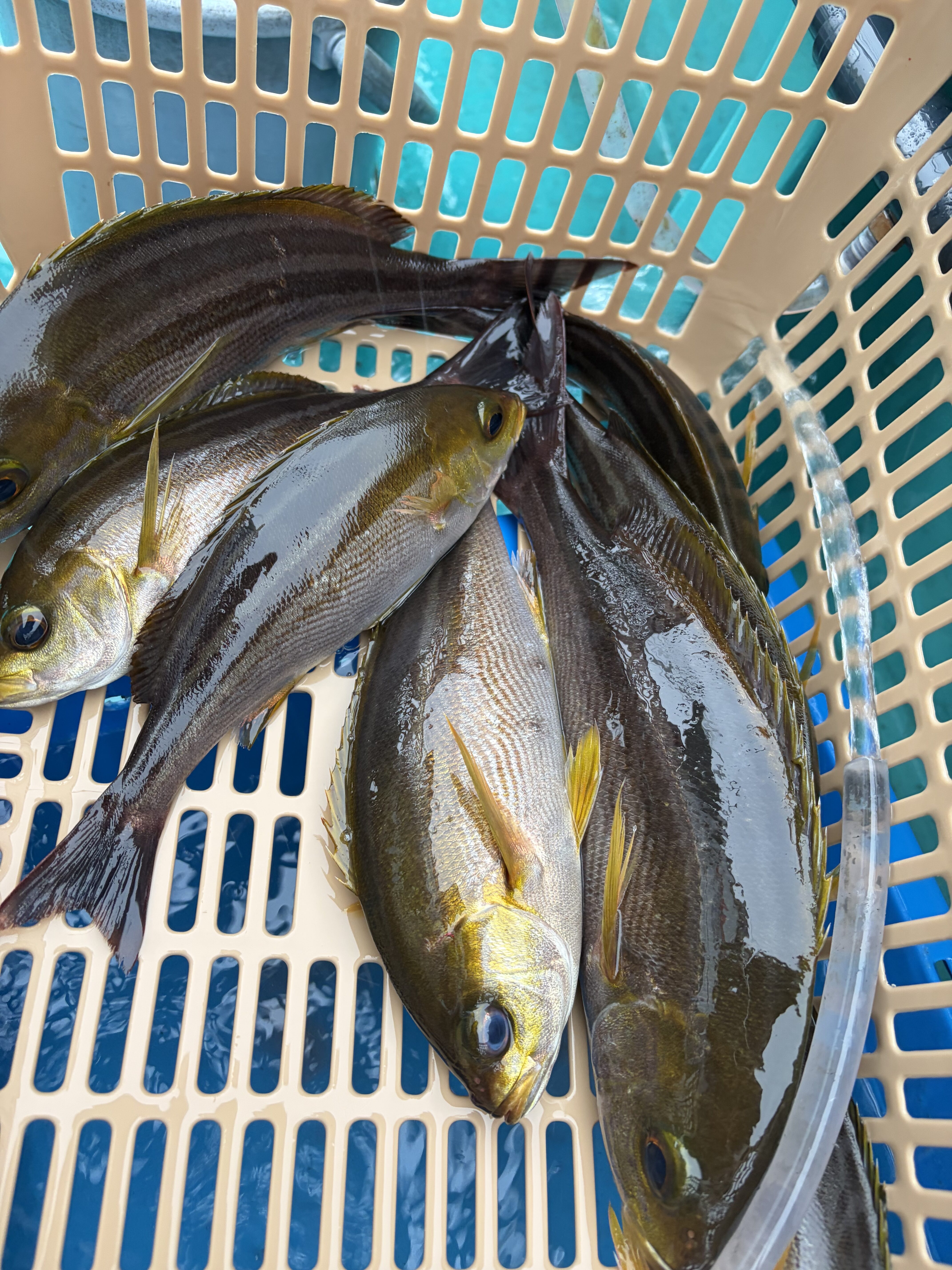 昨年に続き、和歌山県印南の良栄丸さんにお世話になり、中紀ジャンボヒラアジ調査へ行ってきました。ポイントまでは約30分。到着後すぐにコマセを打ち返し釣り開始となりましたが、朝イチは前情報通り反応が乏しく苦戦。反応が出ても食いが浅くバラシが続き、さらに群れの移動も速いため拾い釣りの展開となりました。