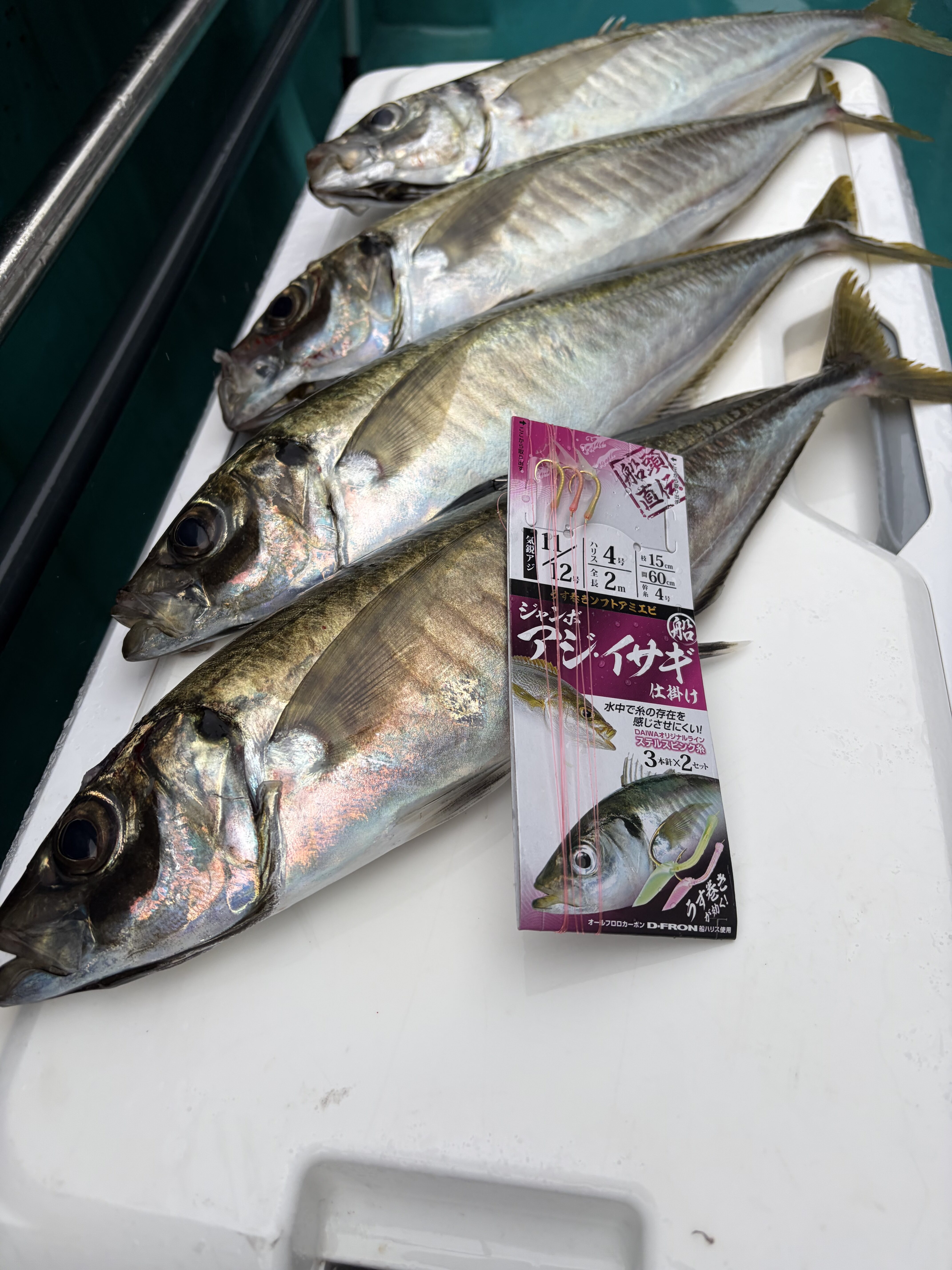 当日は雨も強まり集中力を保つのが難しい時間帯もありましたが、コマセワークを継続し数を伸ばすことに成功。店長はシーボーグ300Jの微速巻きで小さな前アタリを確実に掛け、数を重ねていました。状況に応じた対応力が釣果を分ける一日となりました。
