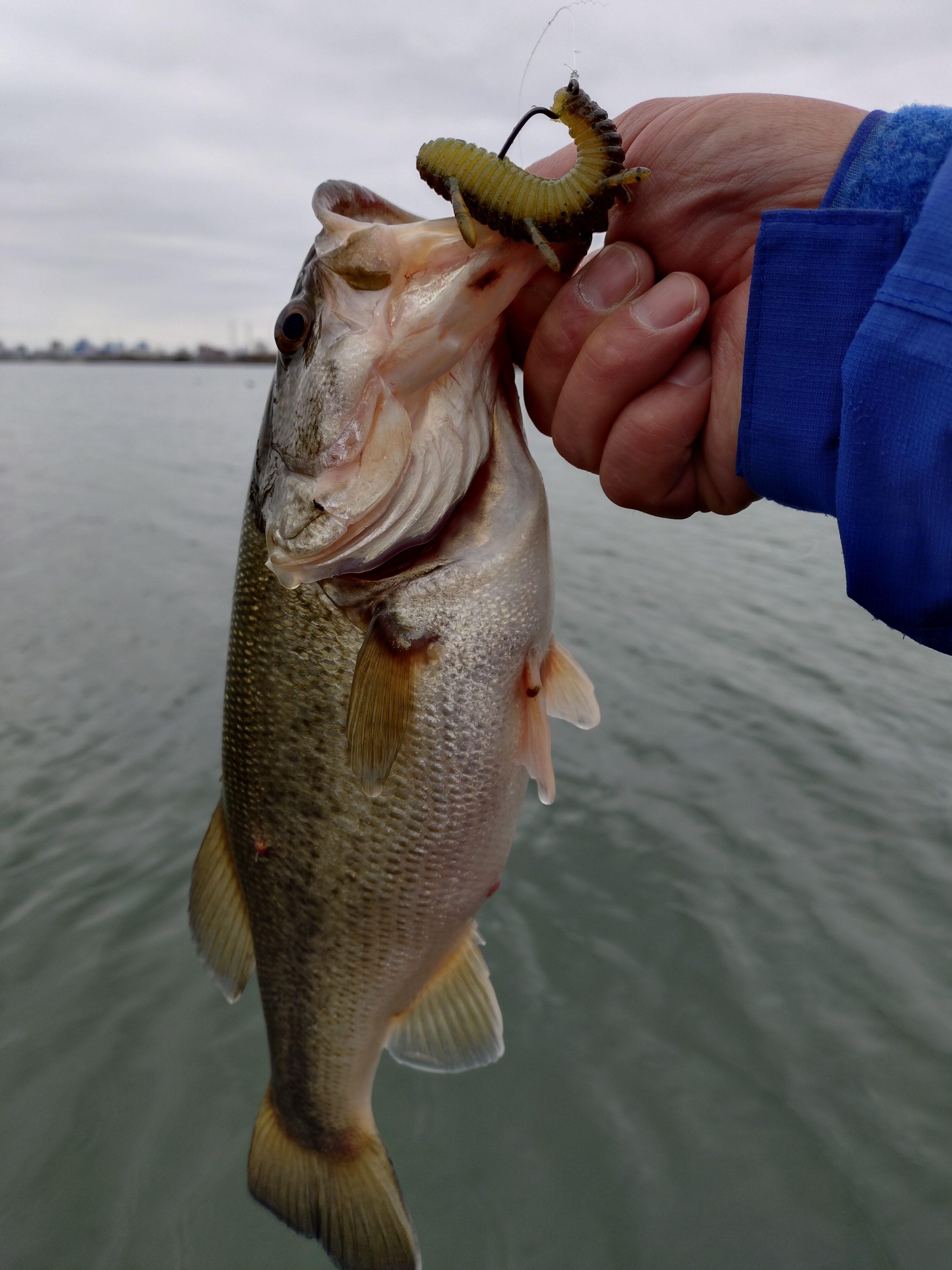 …沈み蟲がボトムから少し浮き上がったタイミングに、恐らくテトラポットにいたであろうバスが、果敢にアタックしてくれて、嬉しい淀川本流バスをキャッチ出来ました(〃∇〃)
