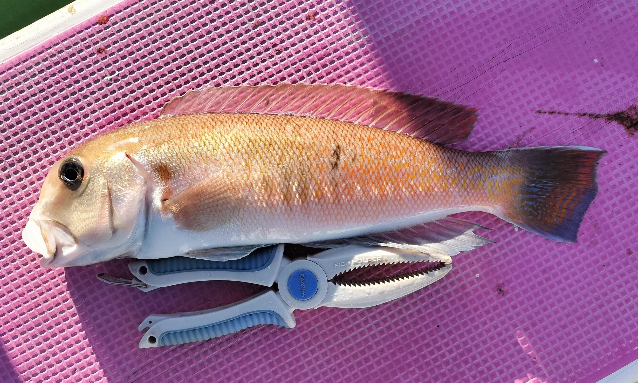 すると右舷ミヨシ氏が40センチ弱のシロアマダイをゲット・・・😅😅😅