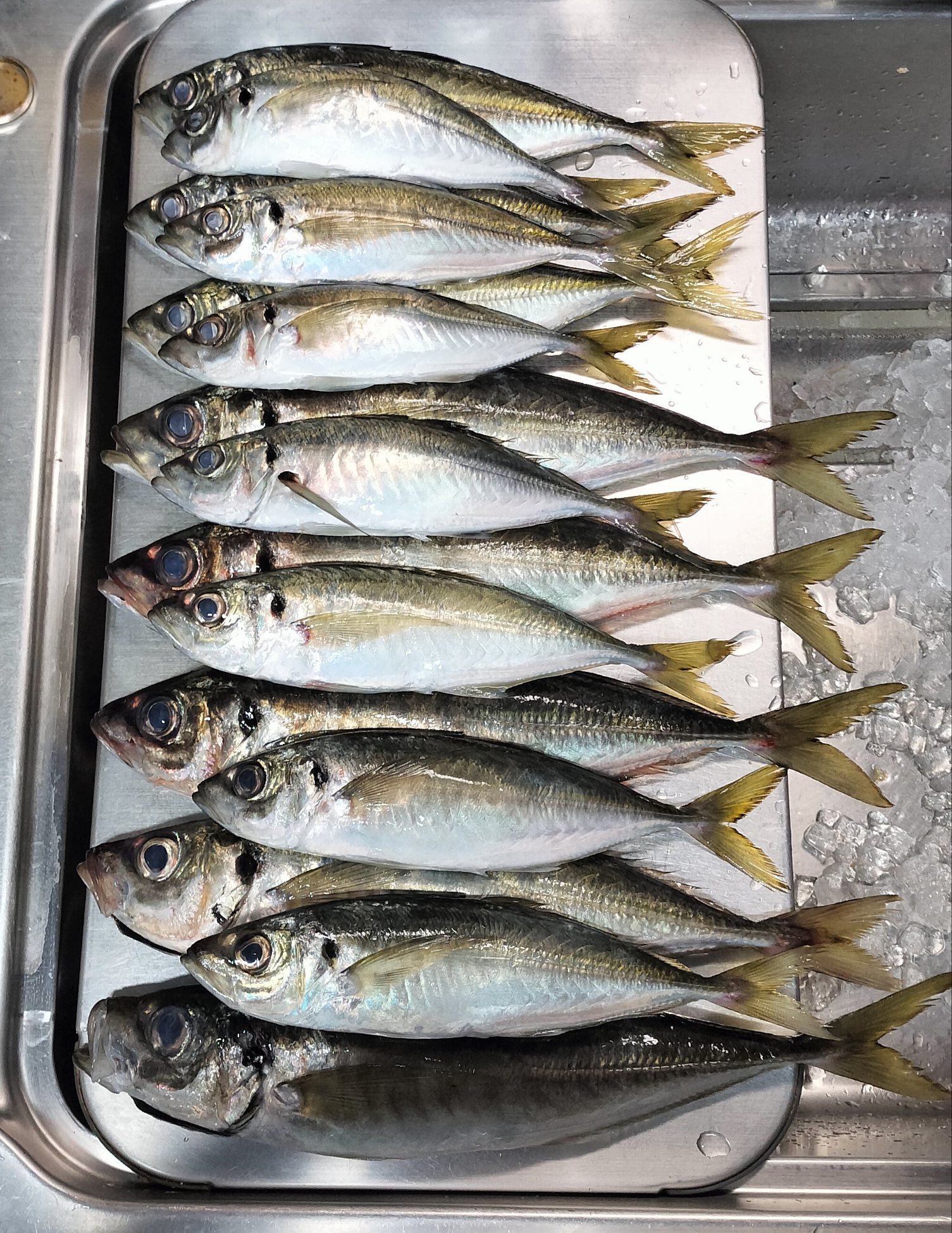 一方でアジの食いは衰える事なくボツボツと釣れ続き25〜30センチ主体に2匹掛けも何度かあって11時過ぎには35匹を釣り上げて、時間的に余裕のあるうちに撮像。